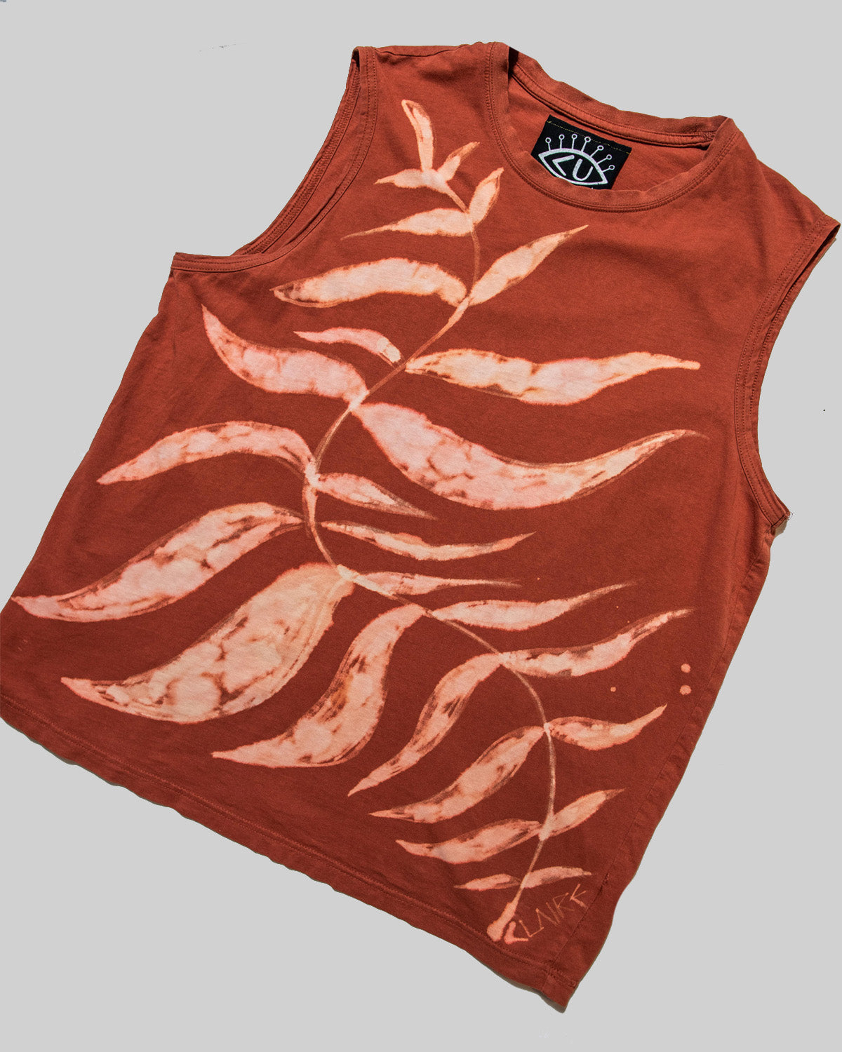 - Design: Hand-painted with bleach dye transfer