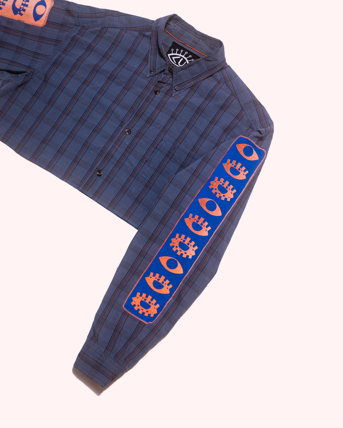 - Blue plaid vintage dress-shirt cropped with a raw edge