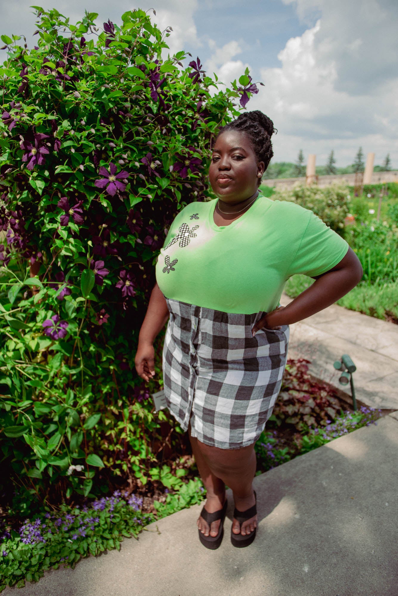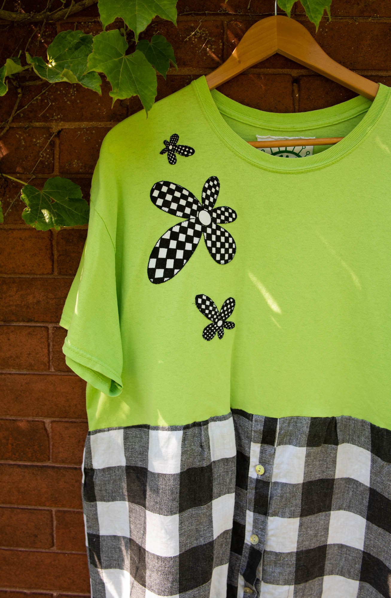 Skirt is a light-weight poly-cotton fabric in black & white plaid design
