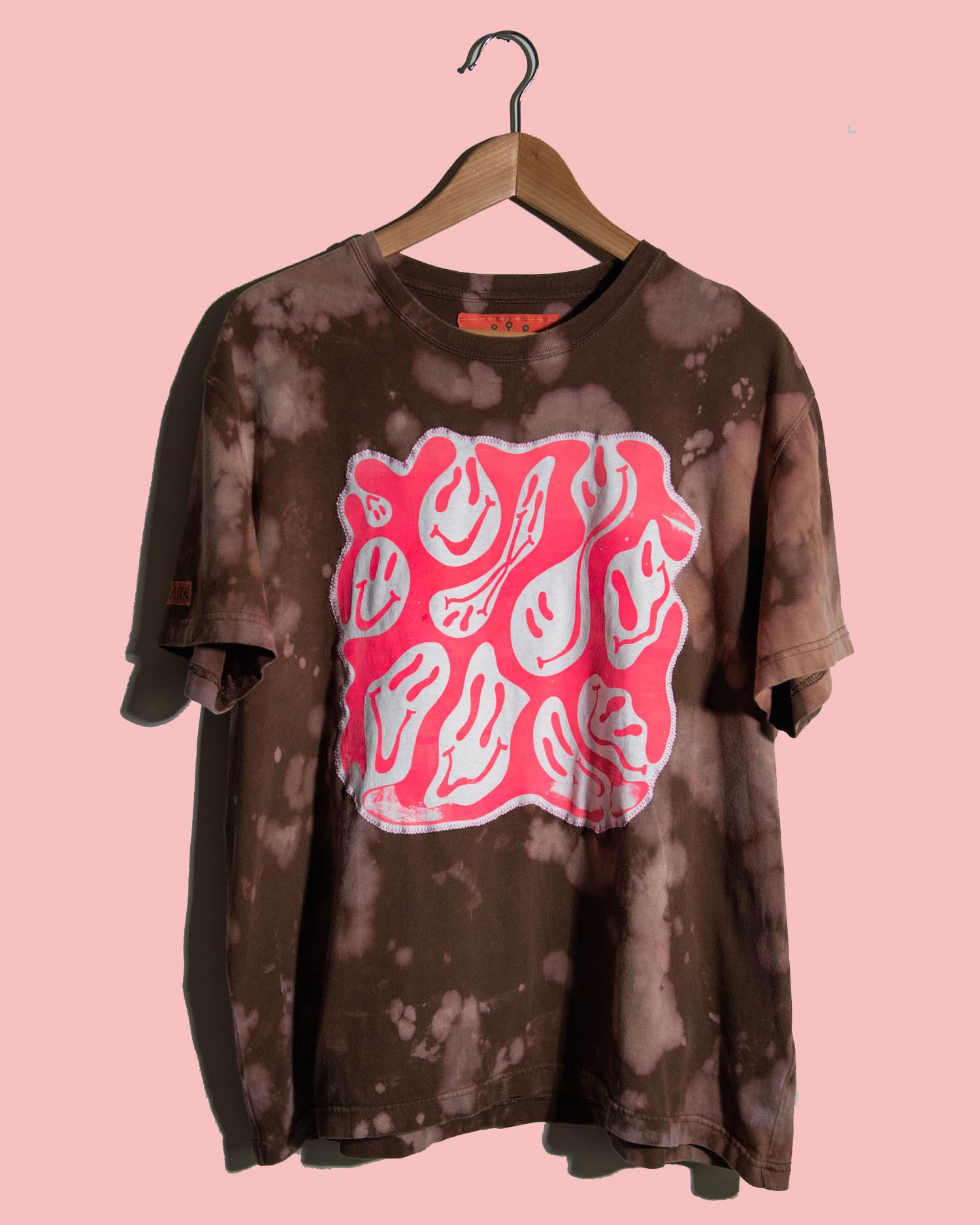- Bleached T-shirt in Brown/Creamy Tan/ Pale Burgundy colours