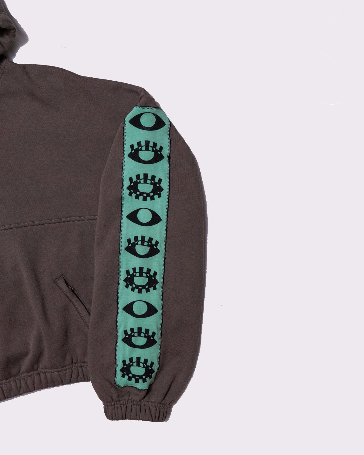 - Design: Teal fabric with black ink, "VISIONARY CHANNELS" Design