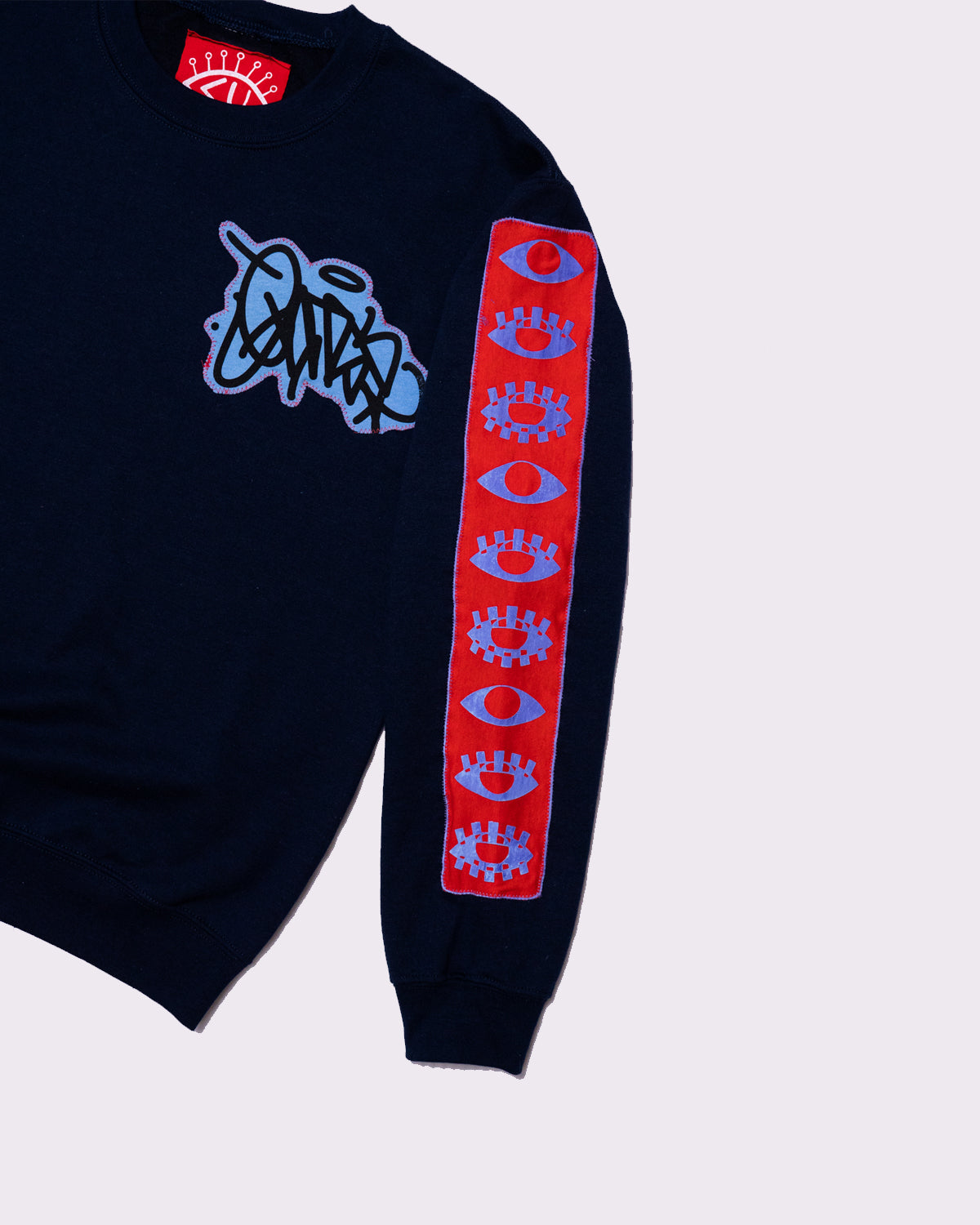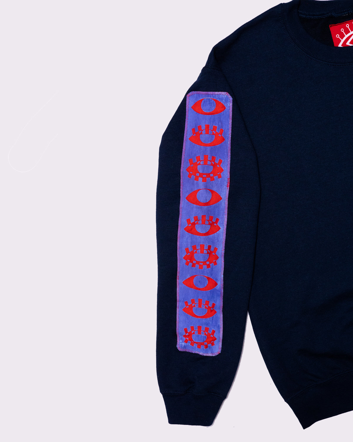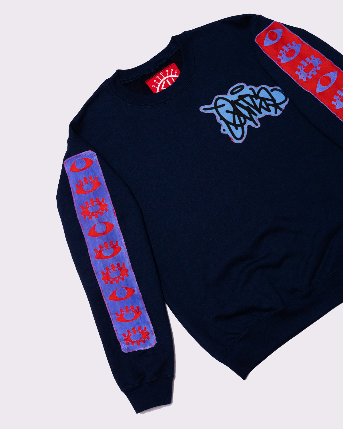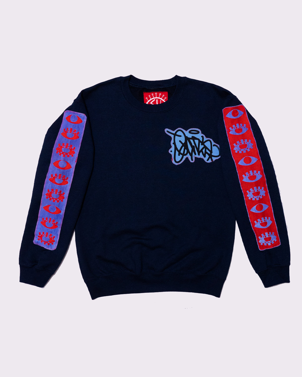 - Design: Cadmium red with blue/orchid purple gradient ink, "VISIONARY CHANNELS" Design + EATS "HANDSTYLE" design
