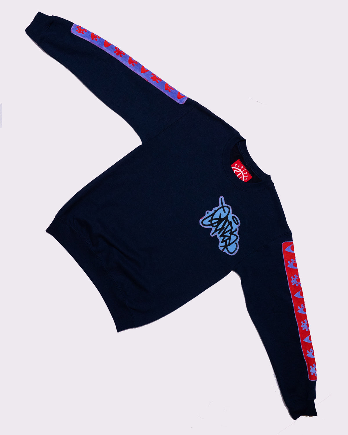 - Navy crewneck sweater