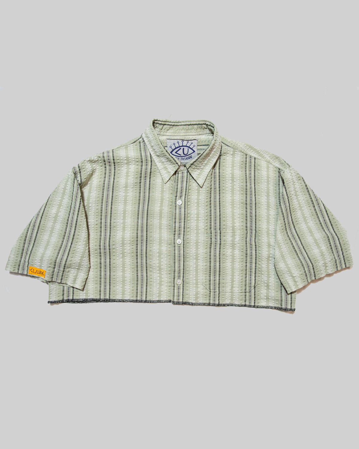 - Vintage cropped button-up dress-shirt, textured fabricc