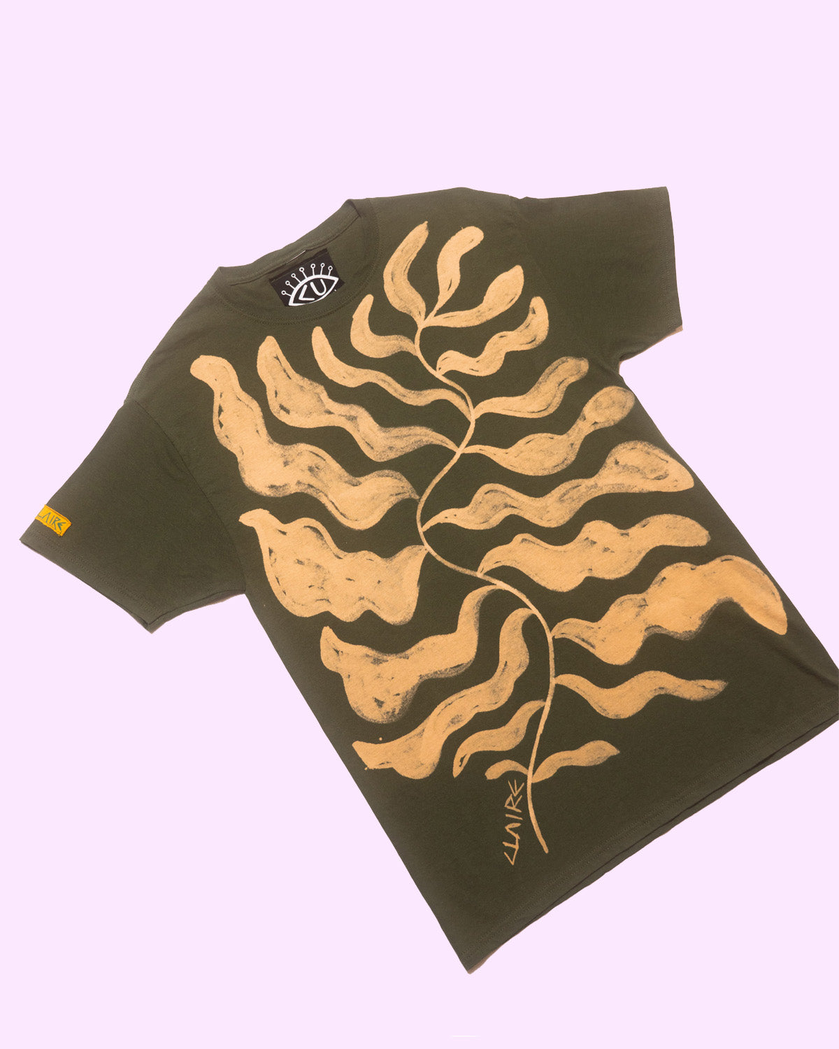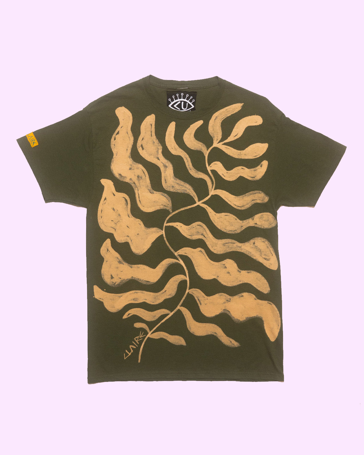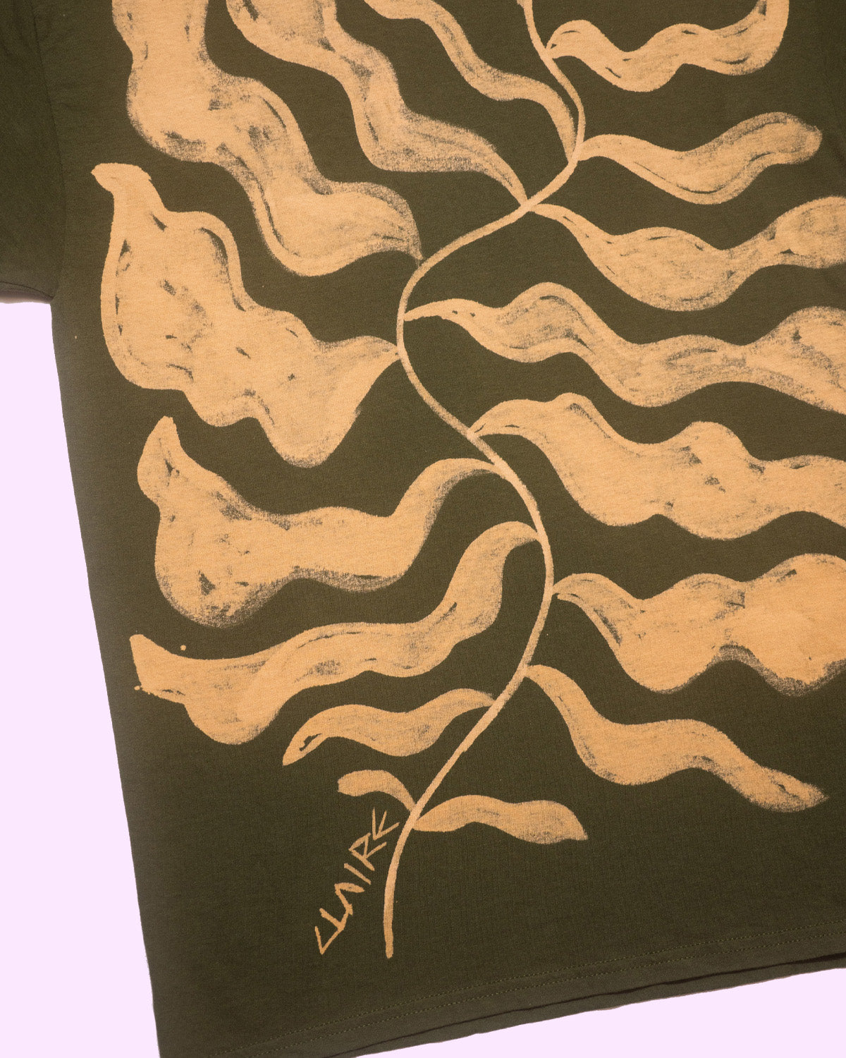 - Design: Hand-painted "Green Leaf by Matisse" impression with bleach dye transfer
