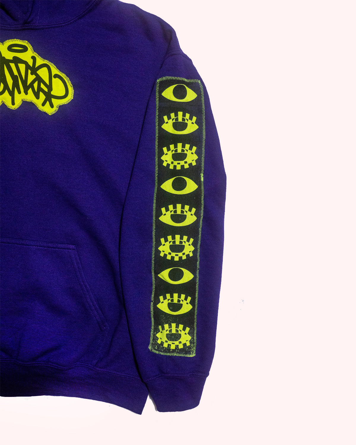 - Design: Neon green fabric with black ink, "VISIONARY CHANNELS" Design