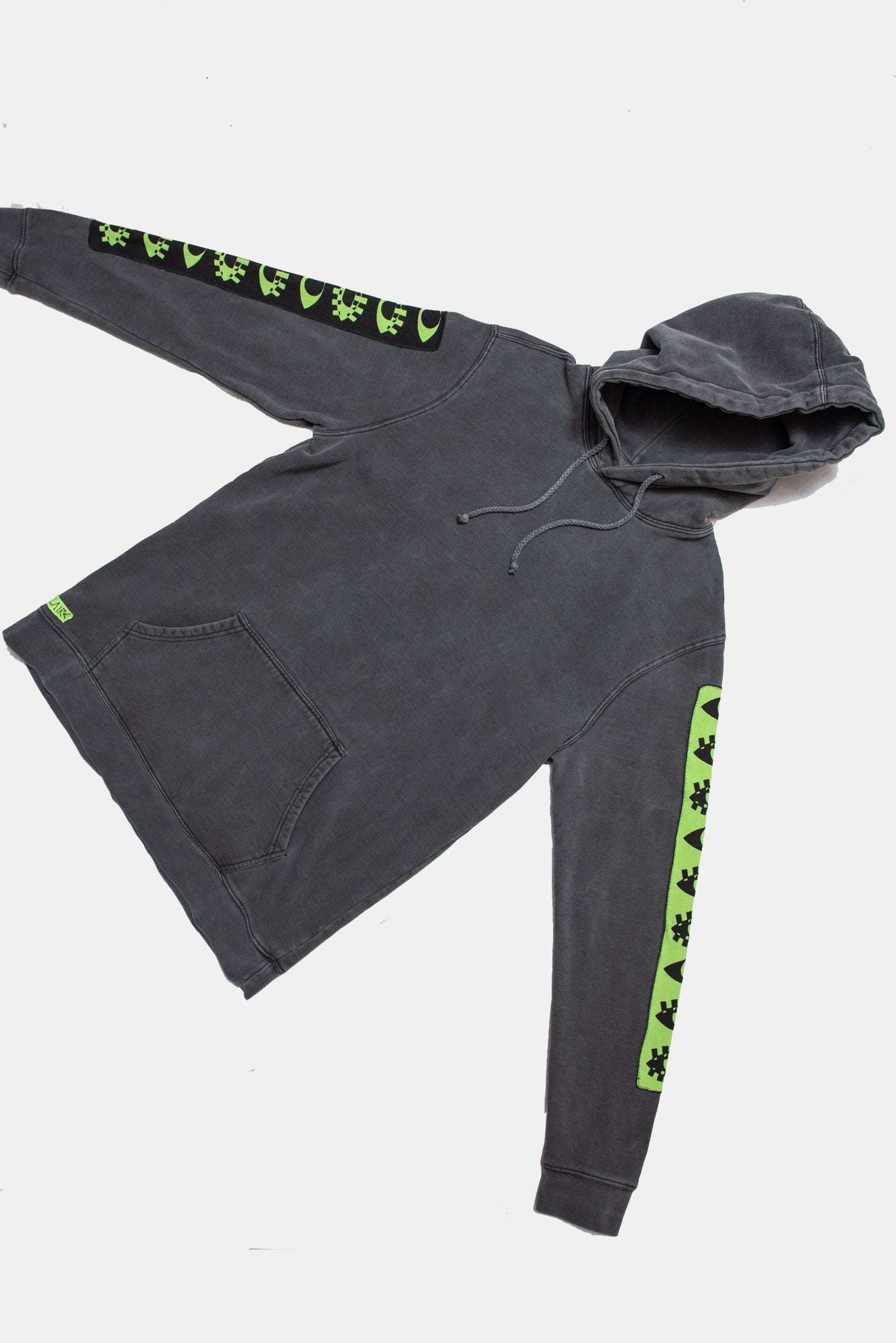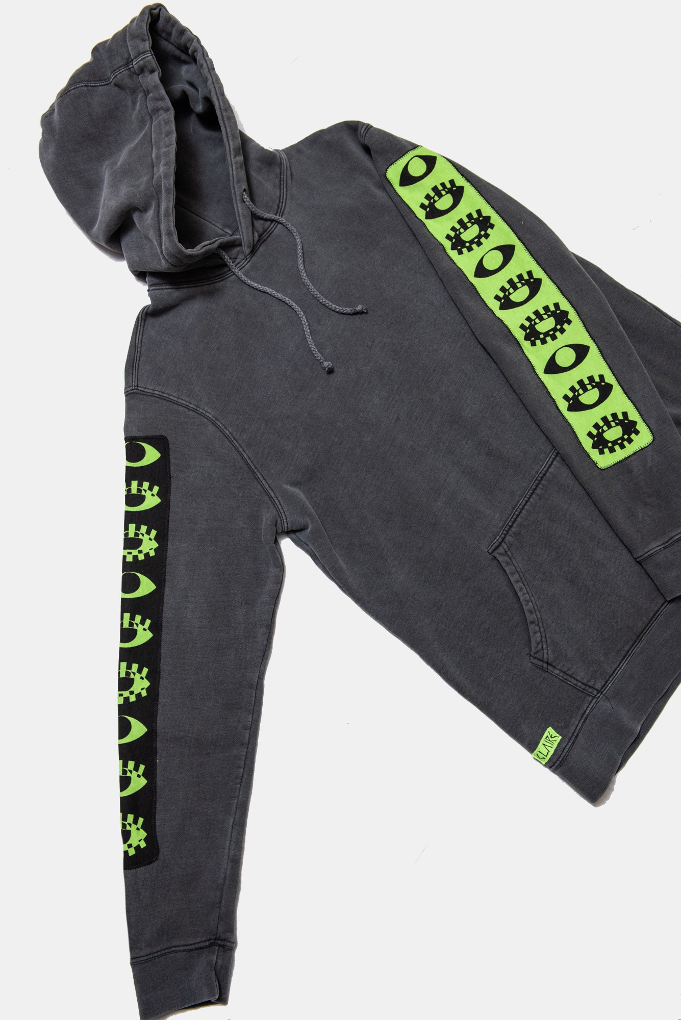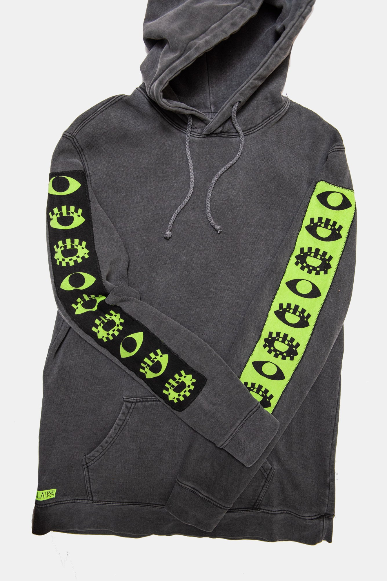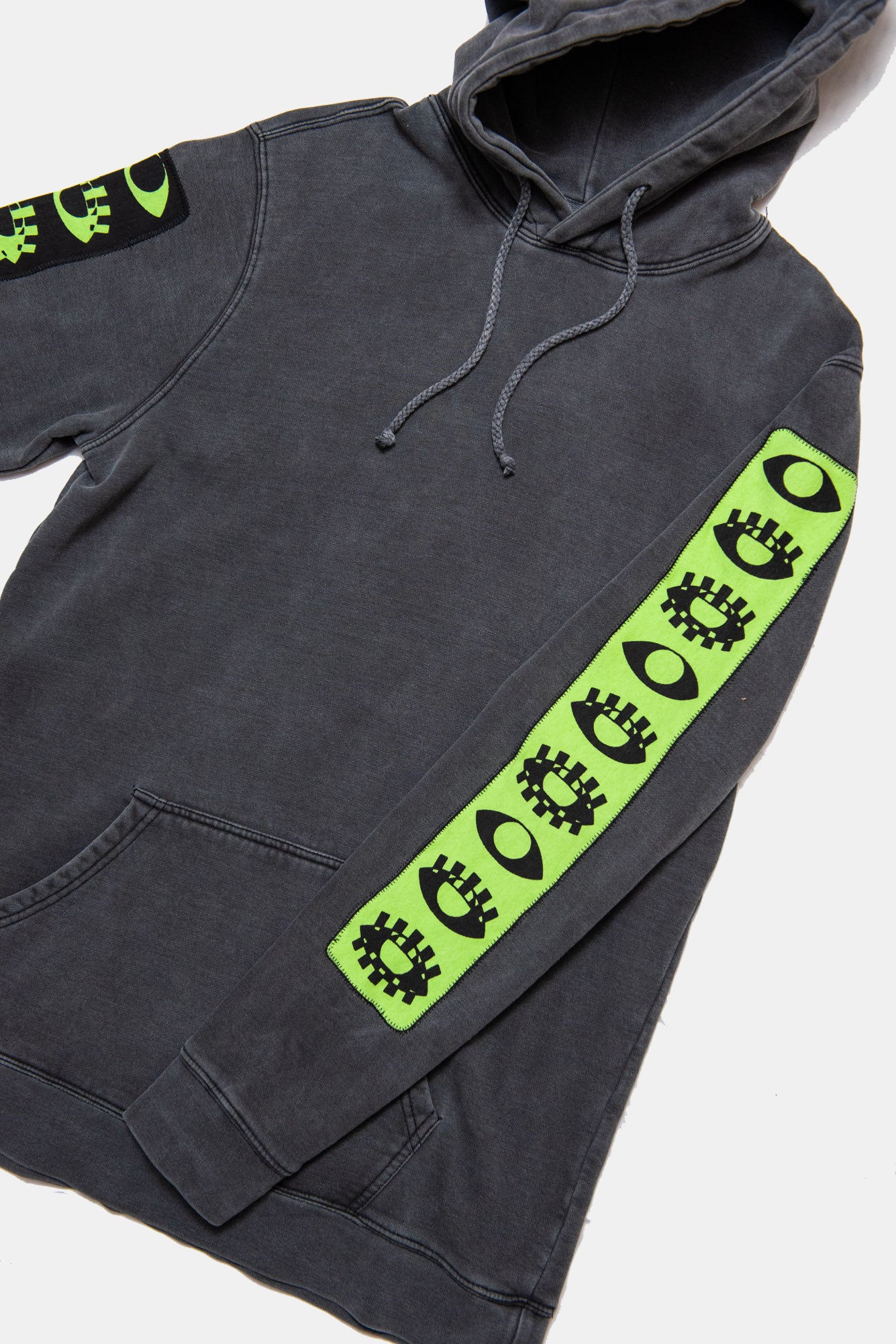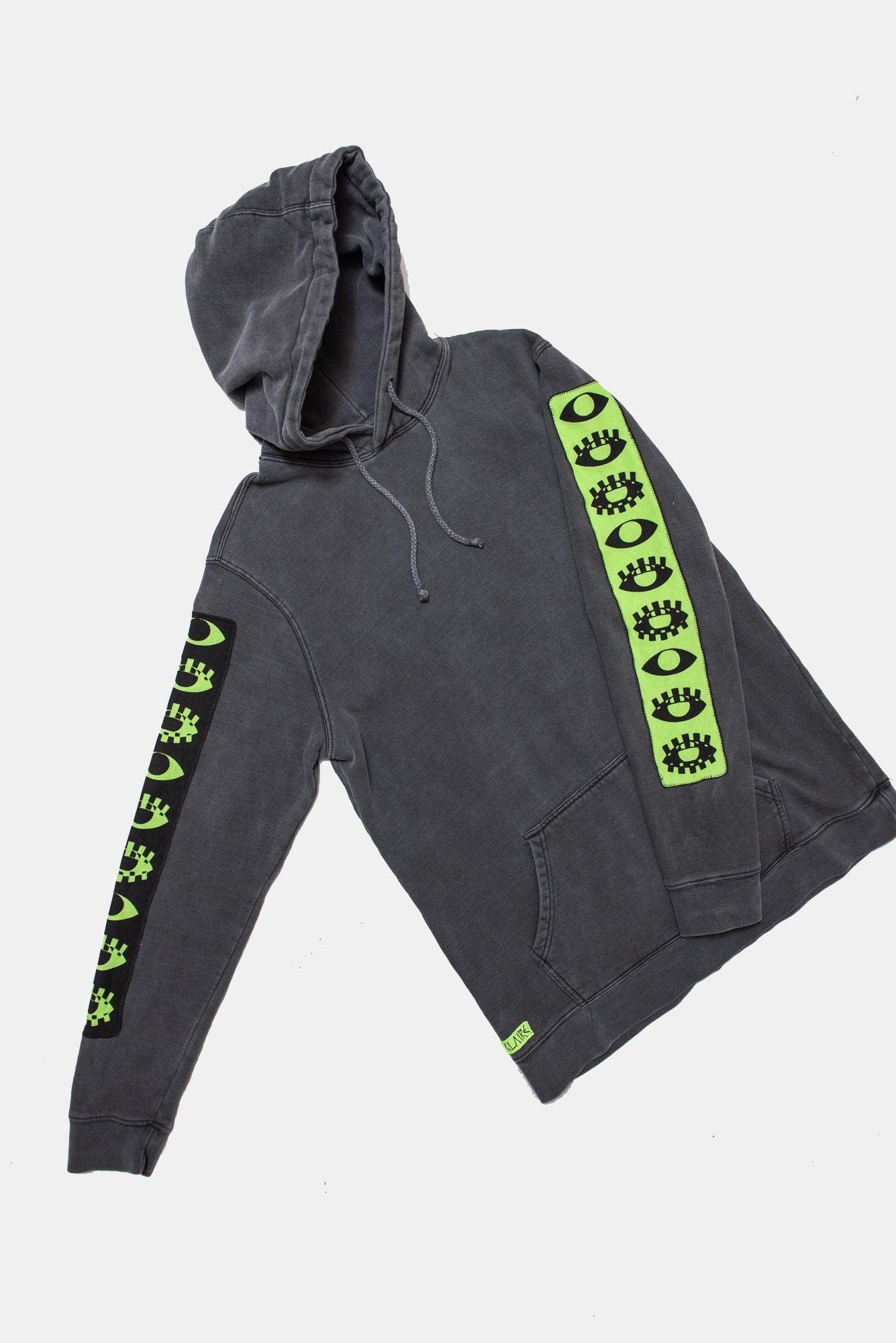 - Design: Neon green fabric with black ink, "VISIONARY CHANNELS" Design