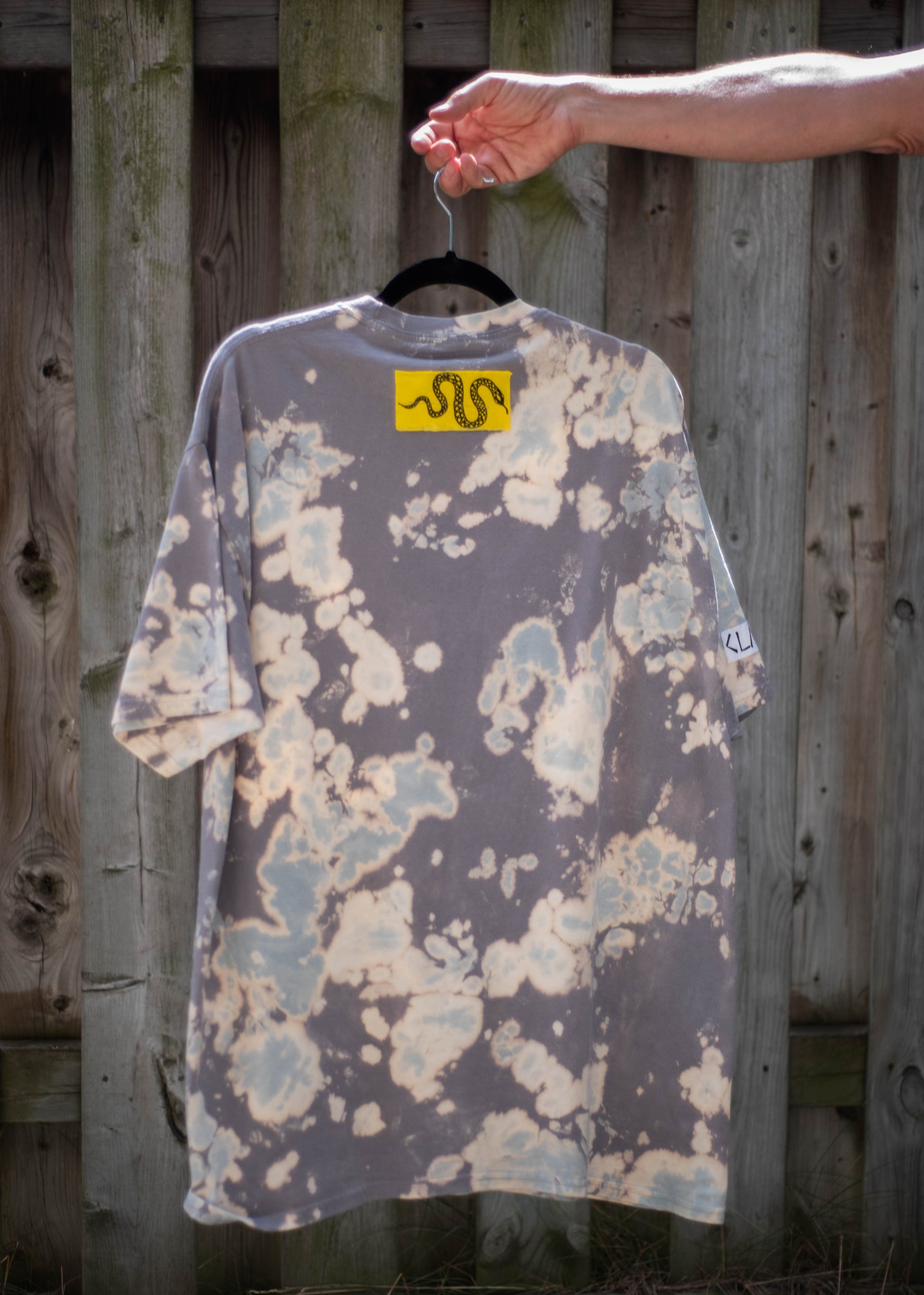 - Hand bleach-dyed T-Shirt with "SNAKE" design