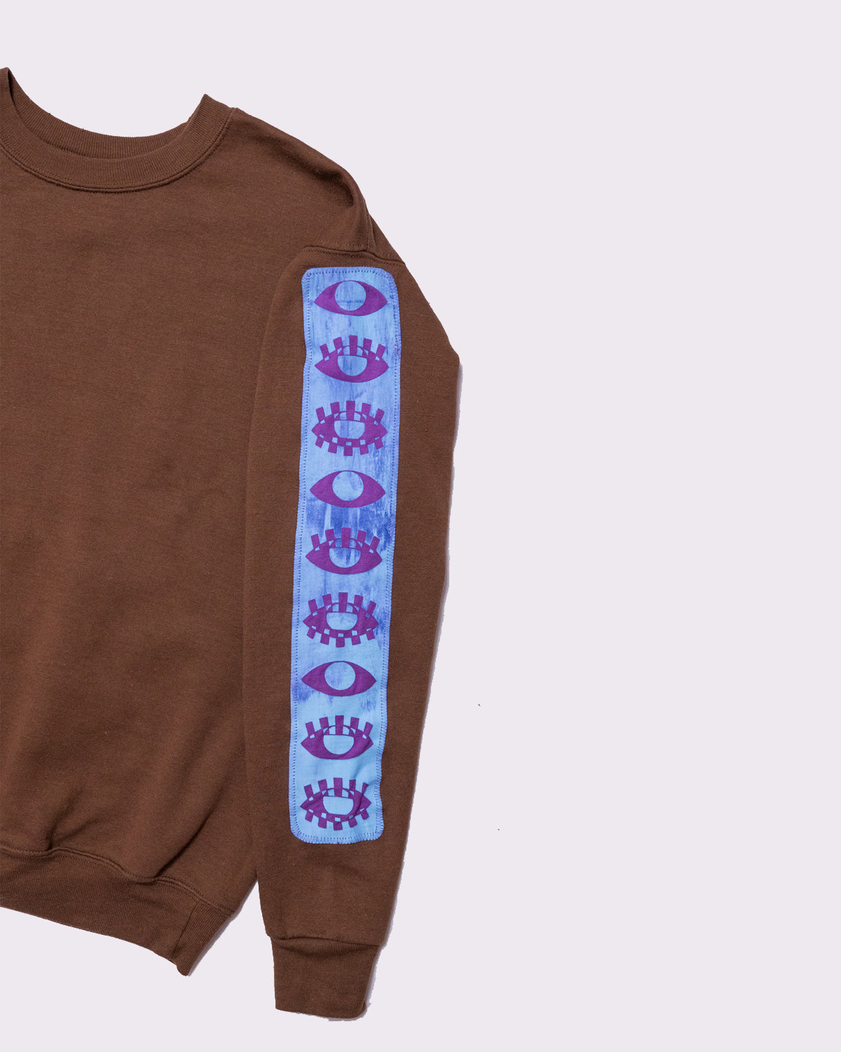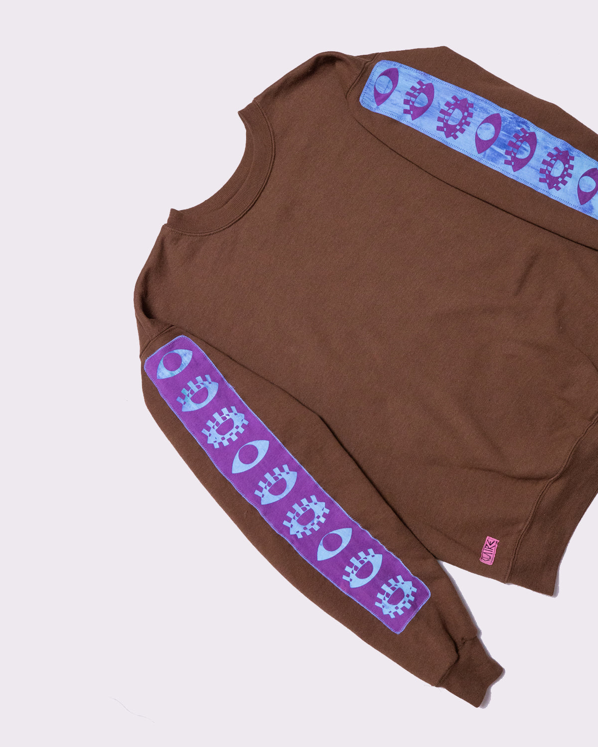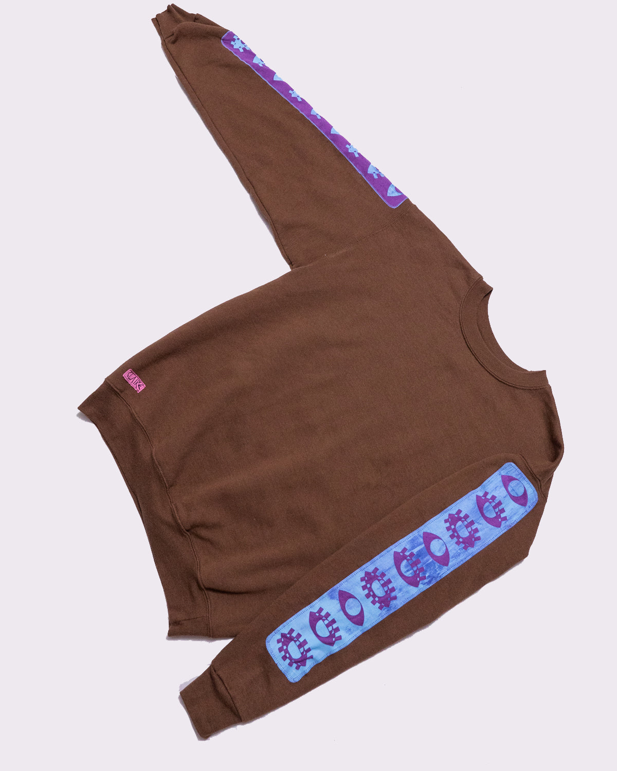 - Design: Lilac fabric with baby blue gradient ink, "VISIONARY CHANNELS" Design