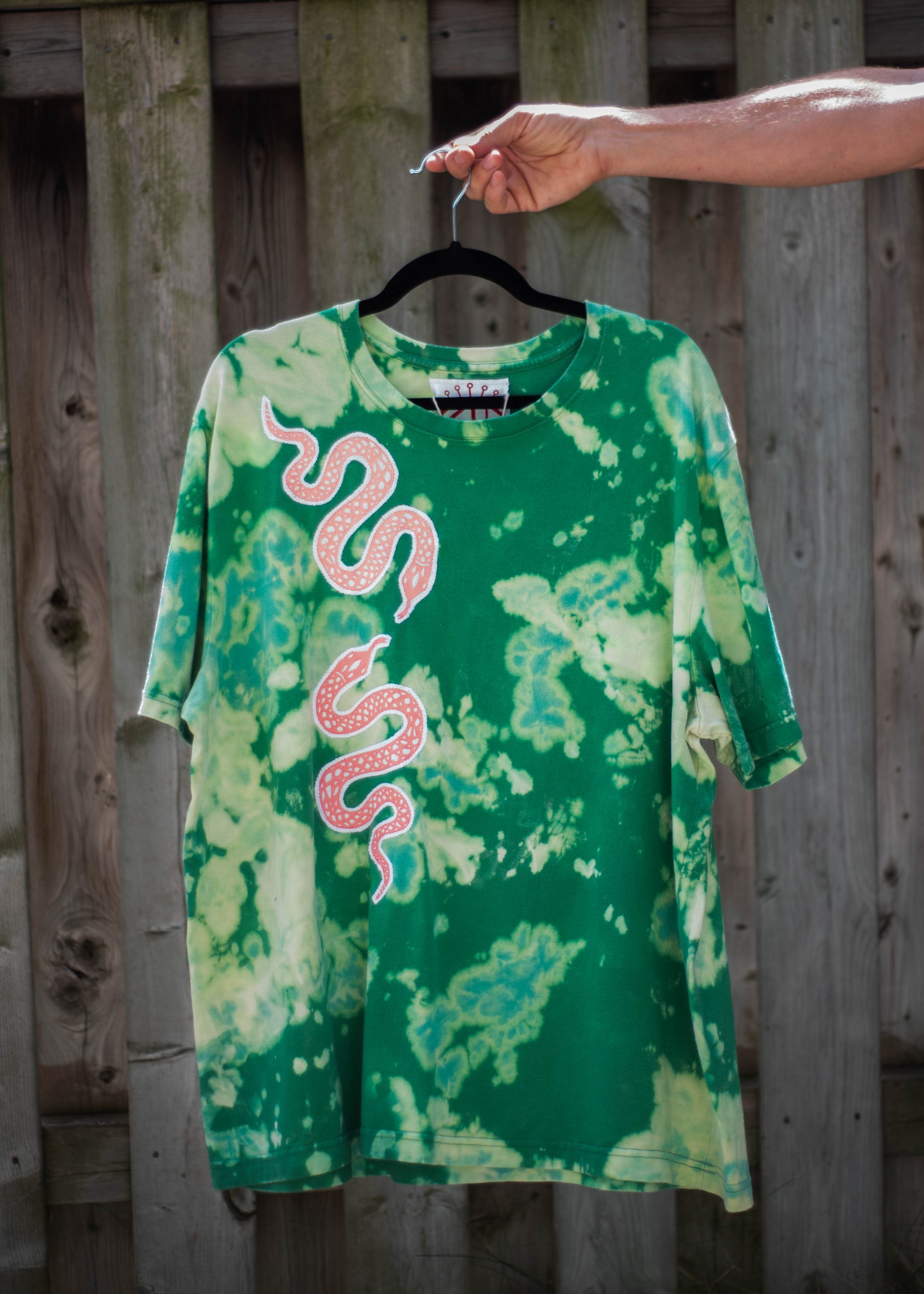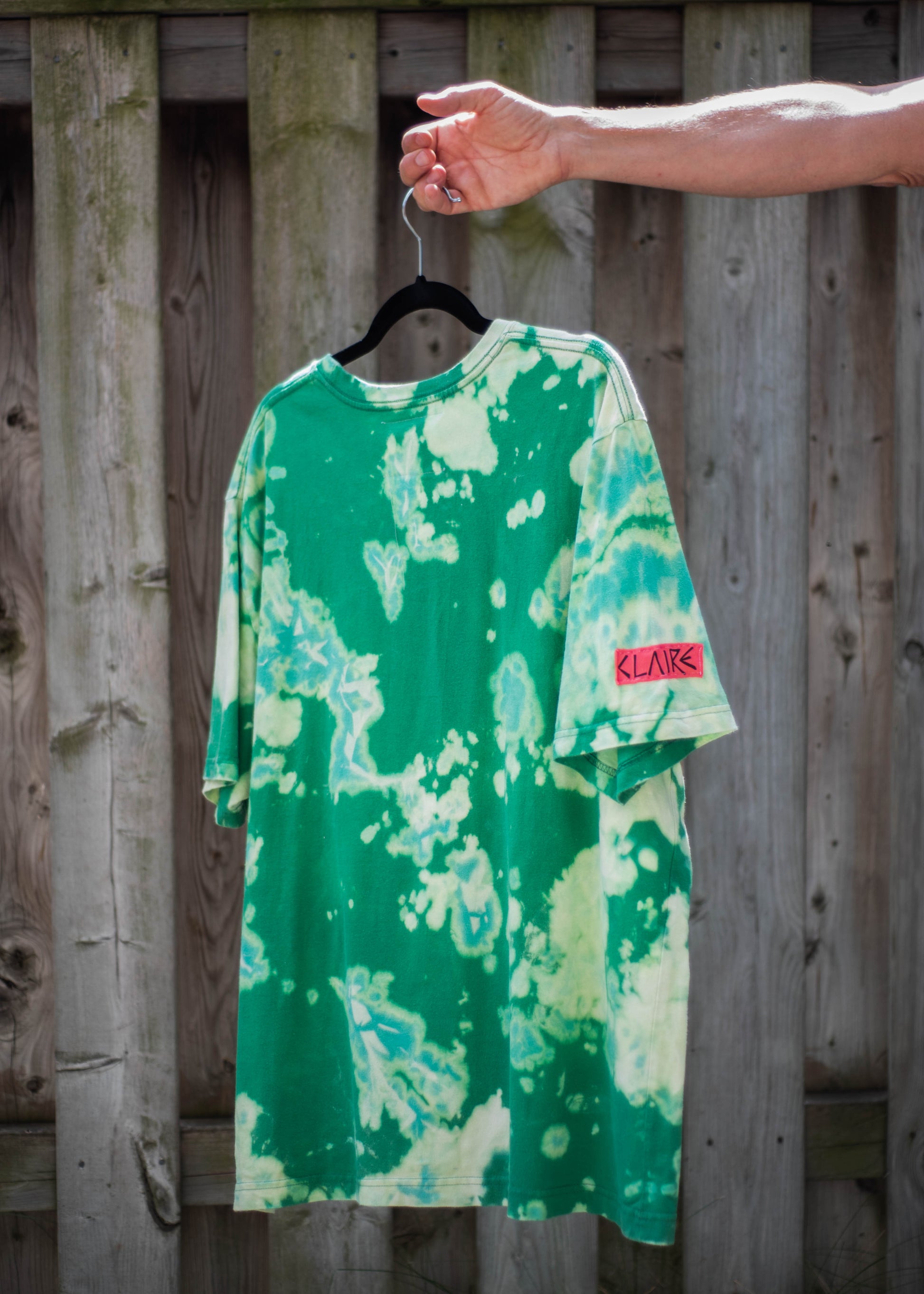 - Hand bleach-dyed green, light green and pale yellow