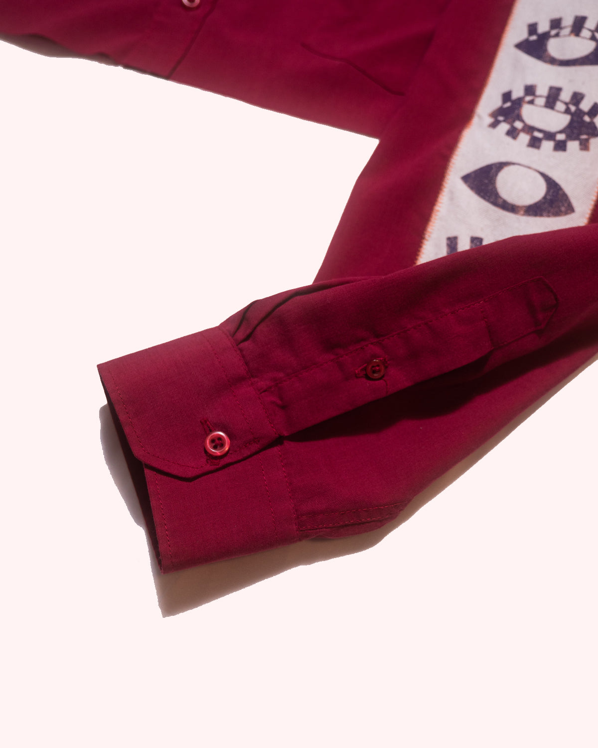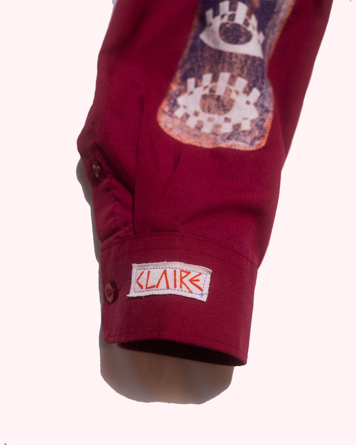 - Burgundy vintage dress-shirt cropped with a raw edge