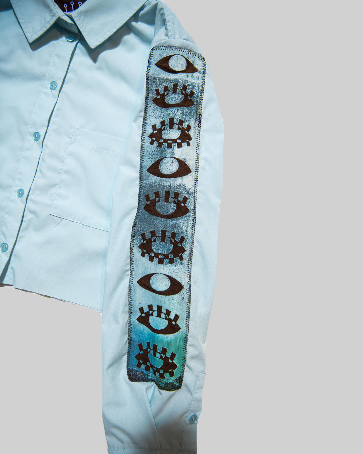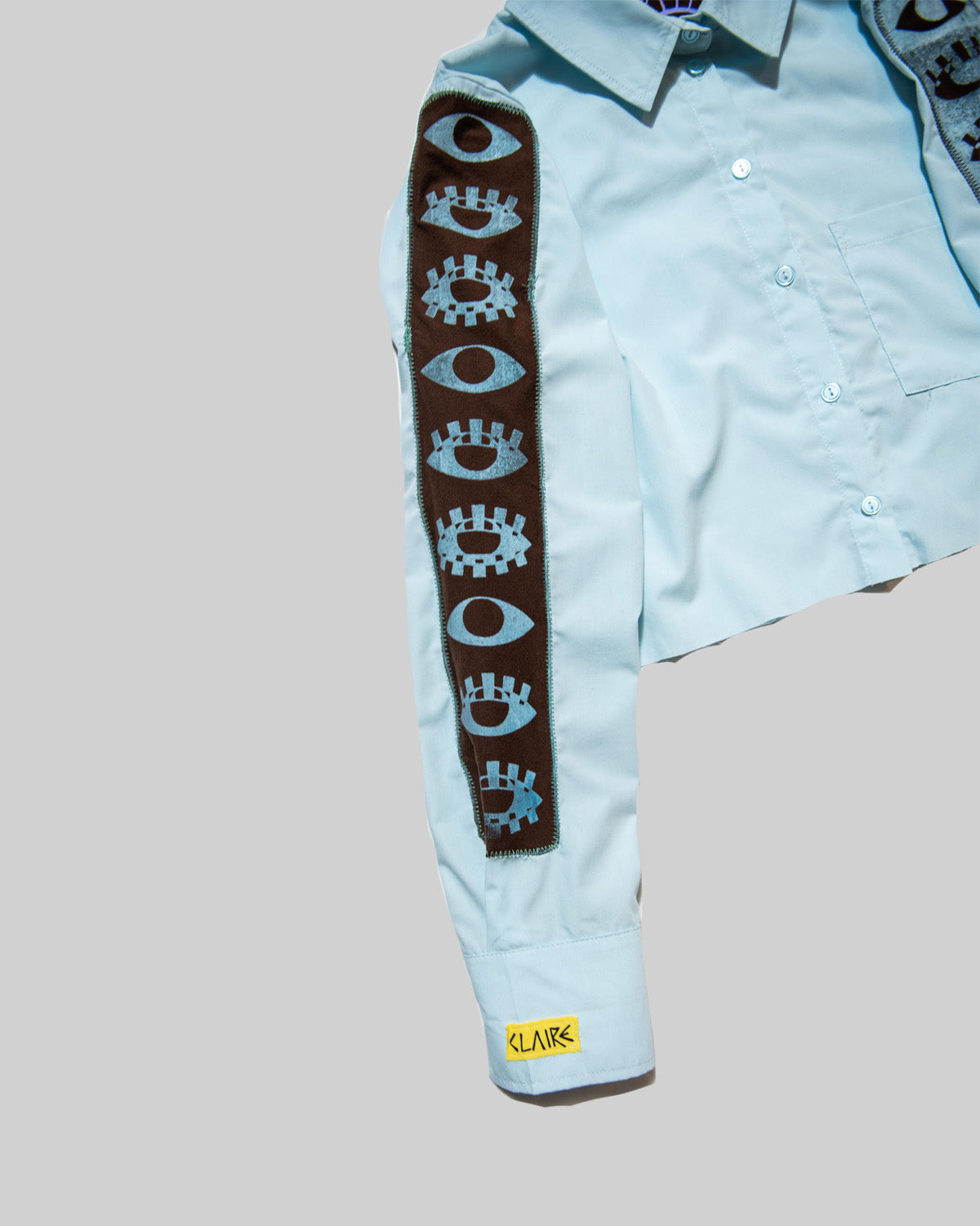- Brand new condition cropped Sky Blue button-up dress-shirt