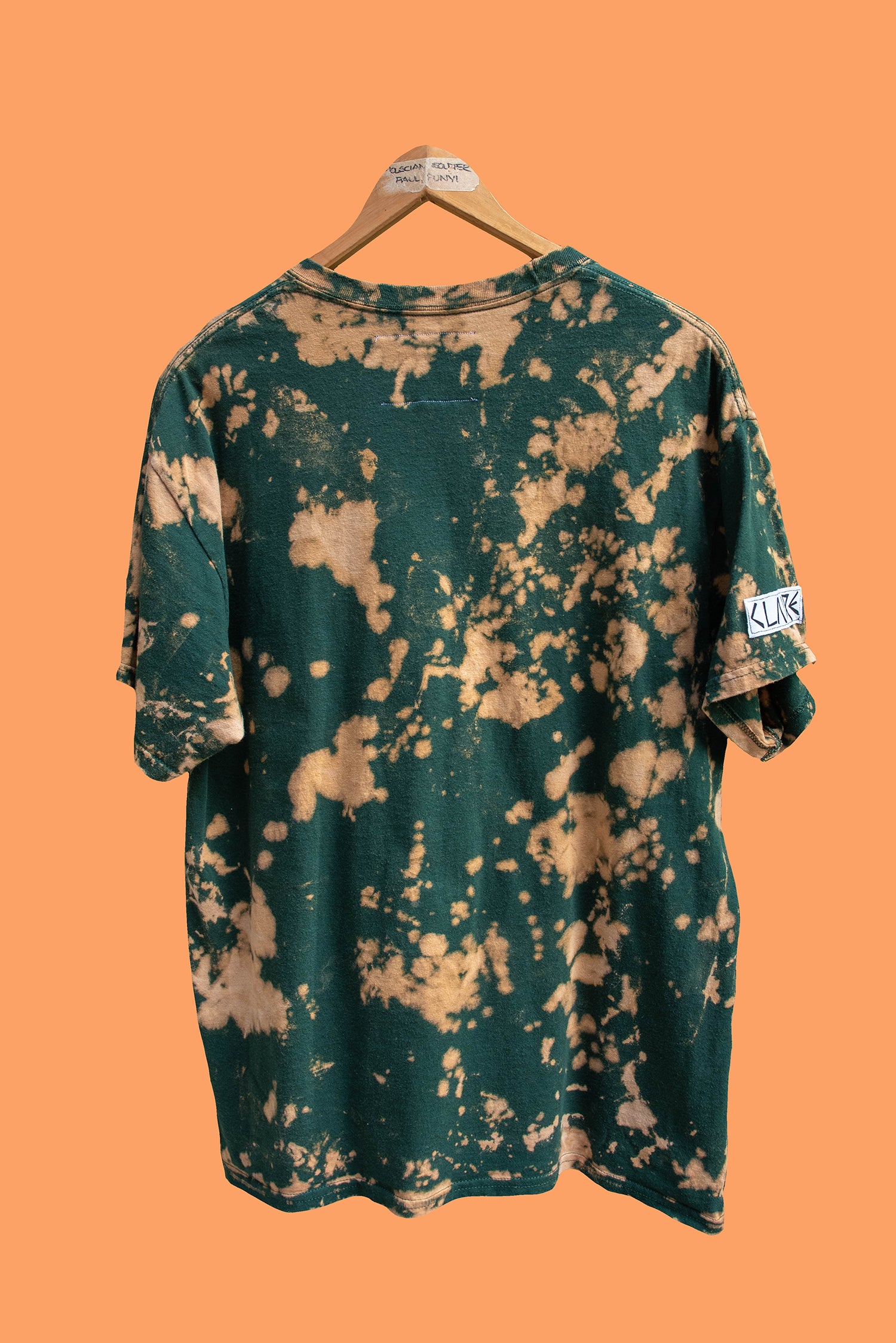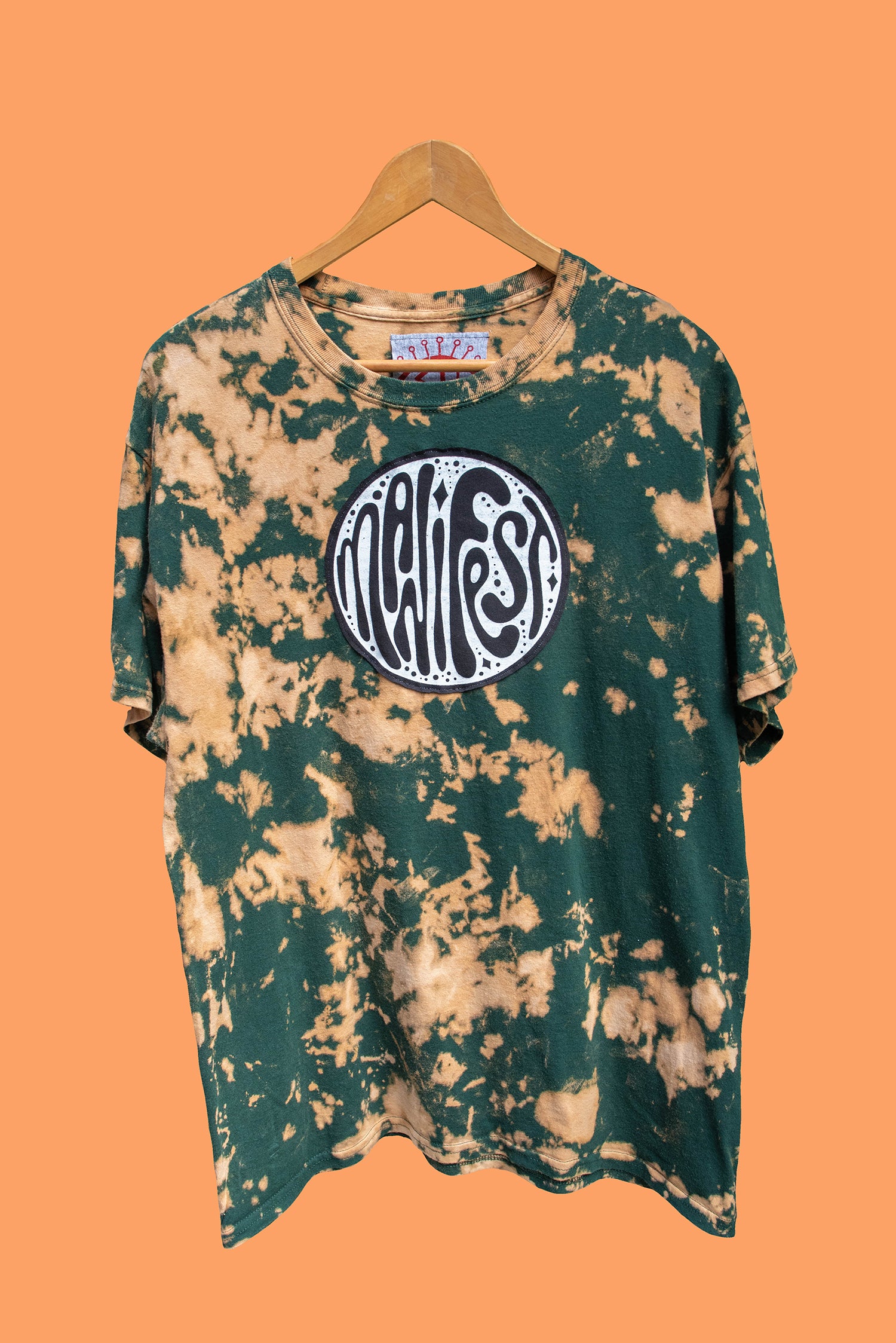- Hand bleach-dyed forest green & orange t-shirt wtih "MANIFEST" design