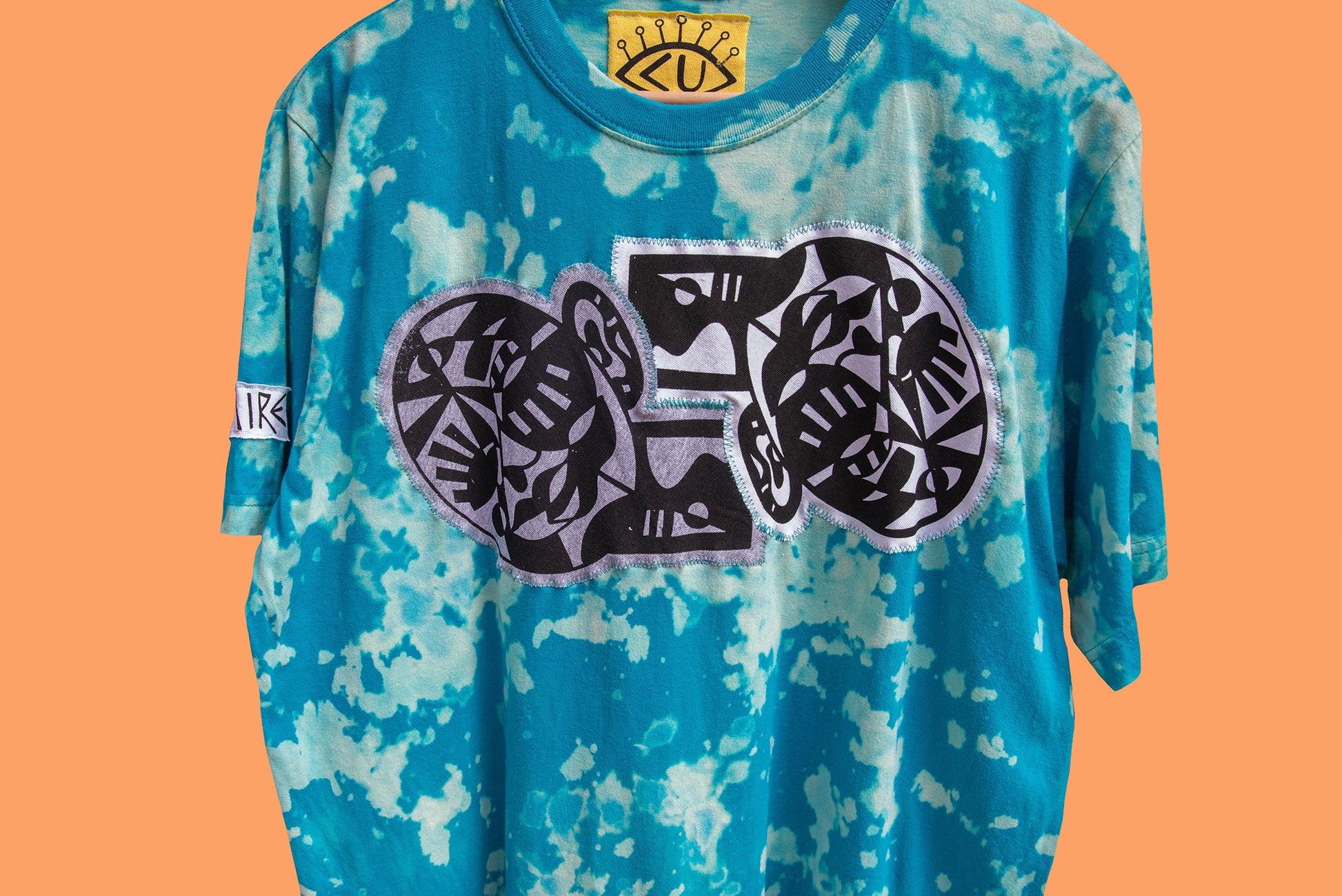 - Hand bleach dyed t-shirt with "GROOVE" x 2 design