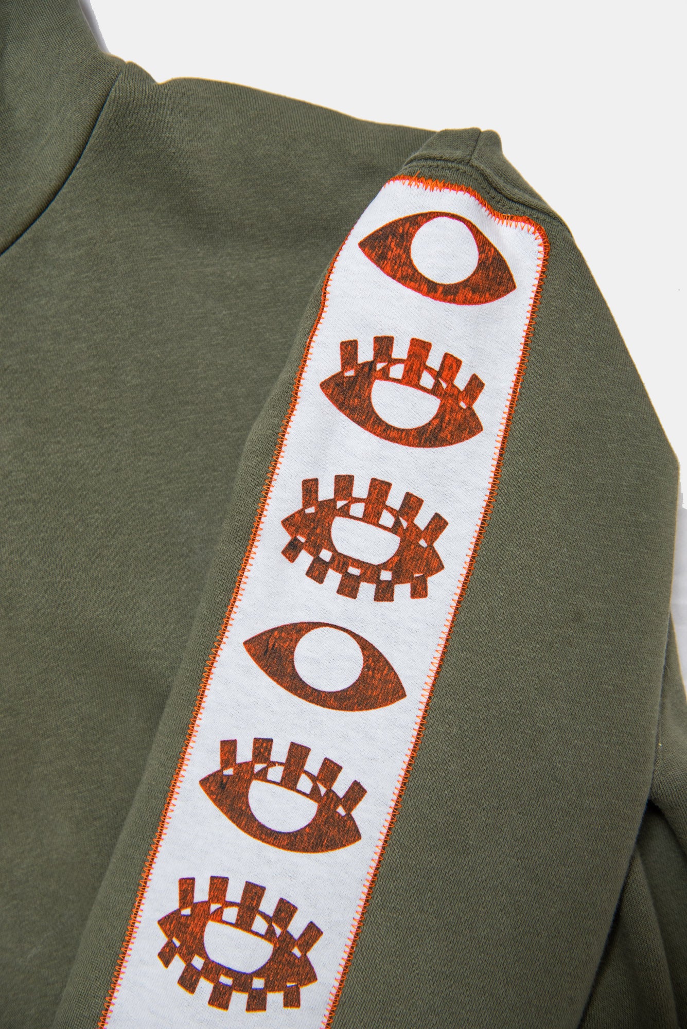 - Design: White fabric with orange & black ink blend, "VISIONARY CHANNELS" Design