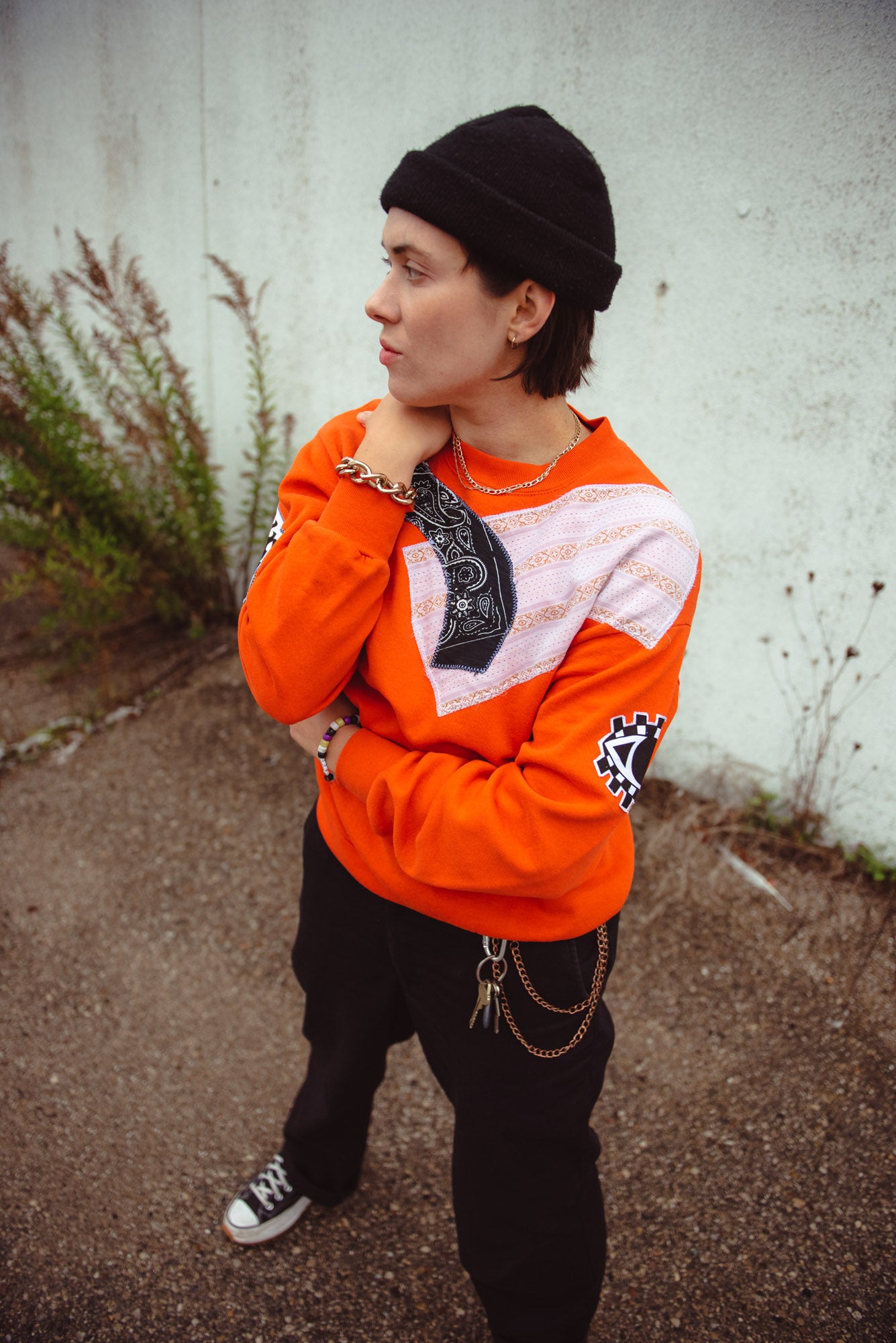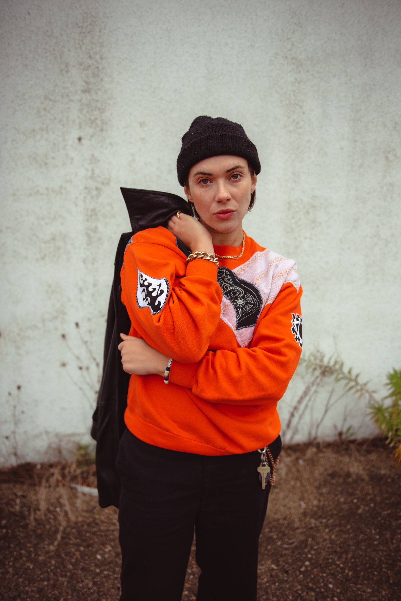 - Bright orange vintage crewneck sweater