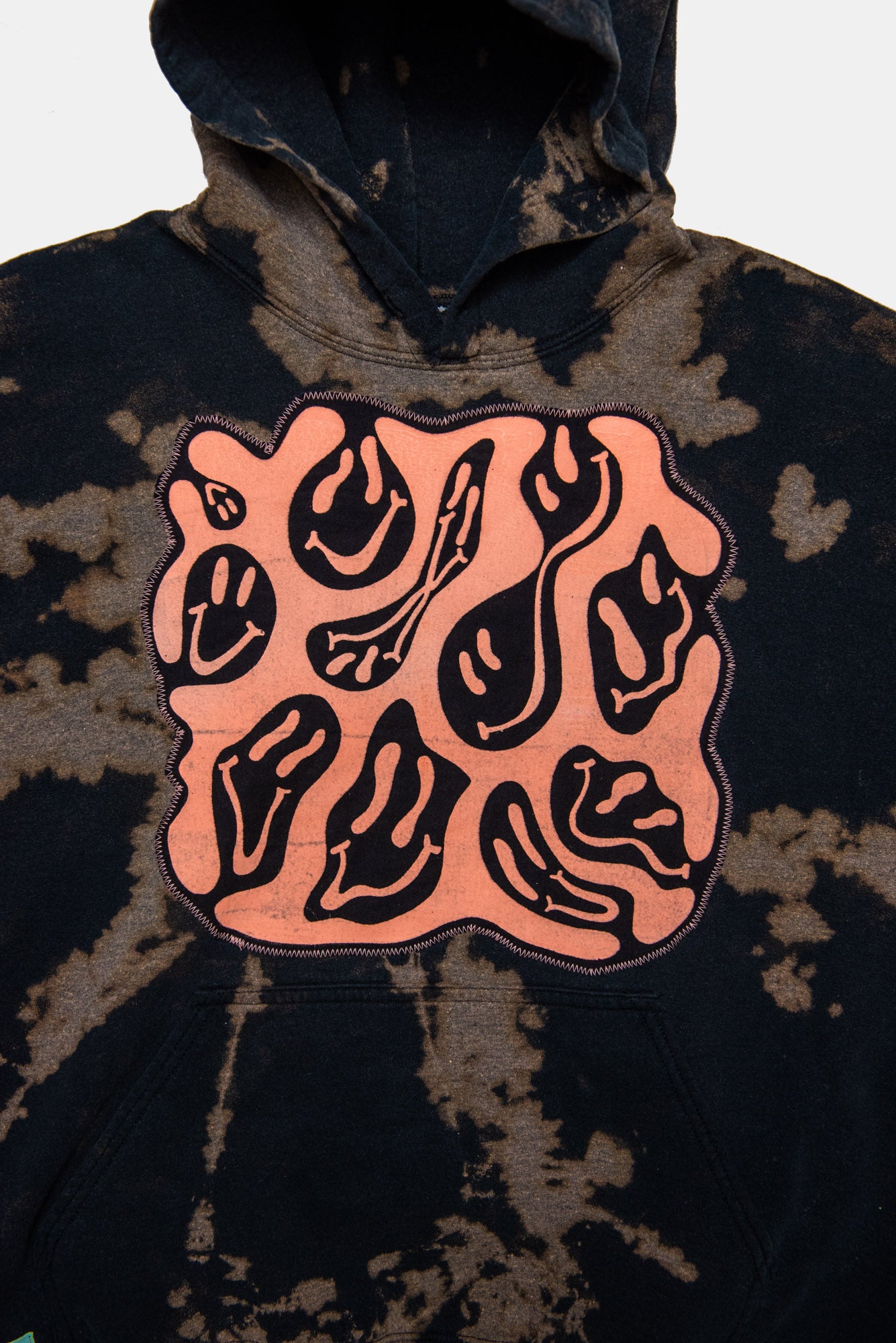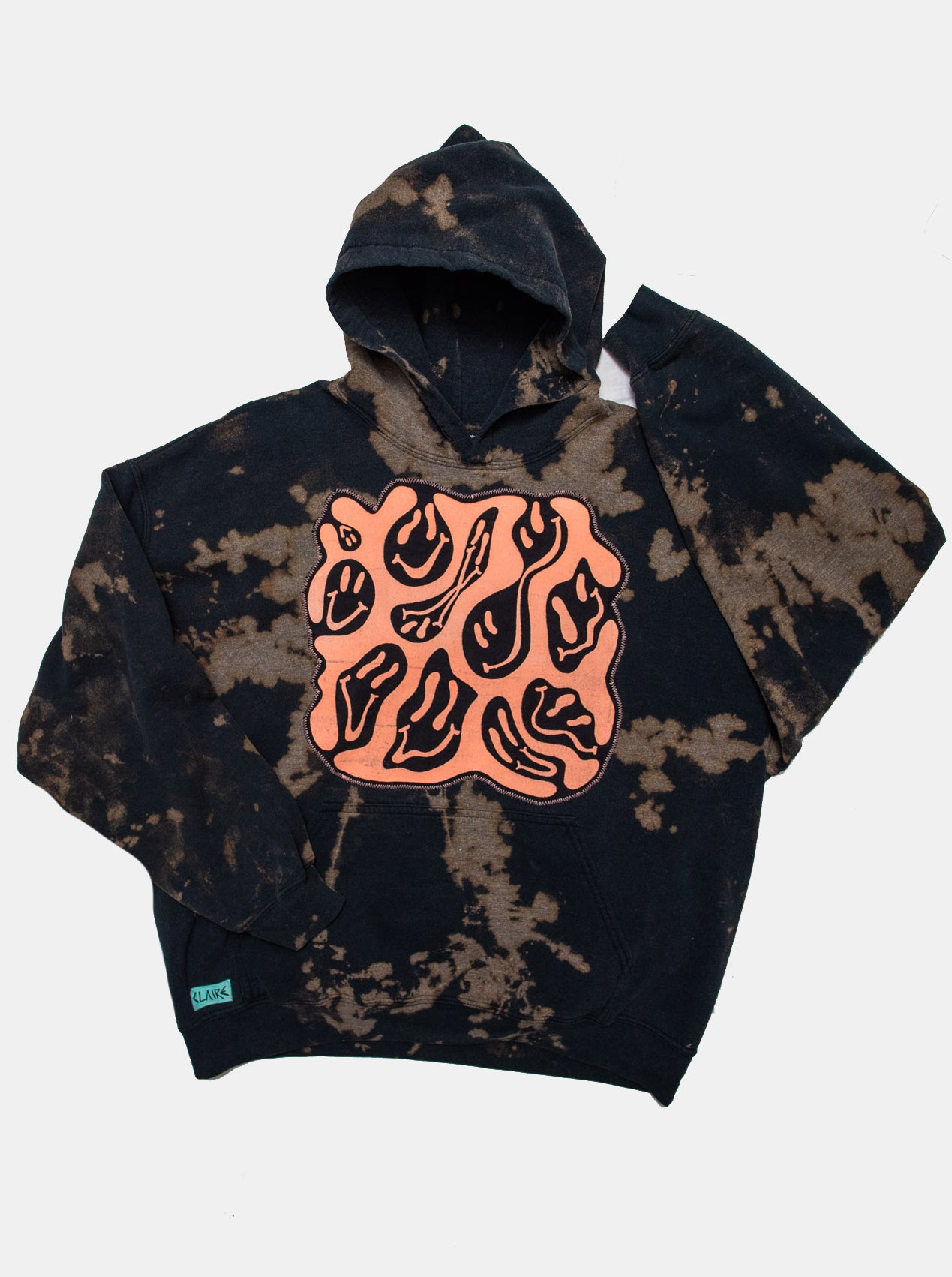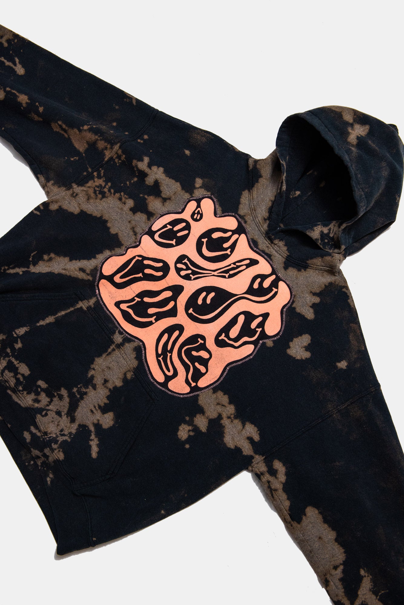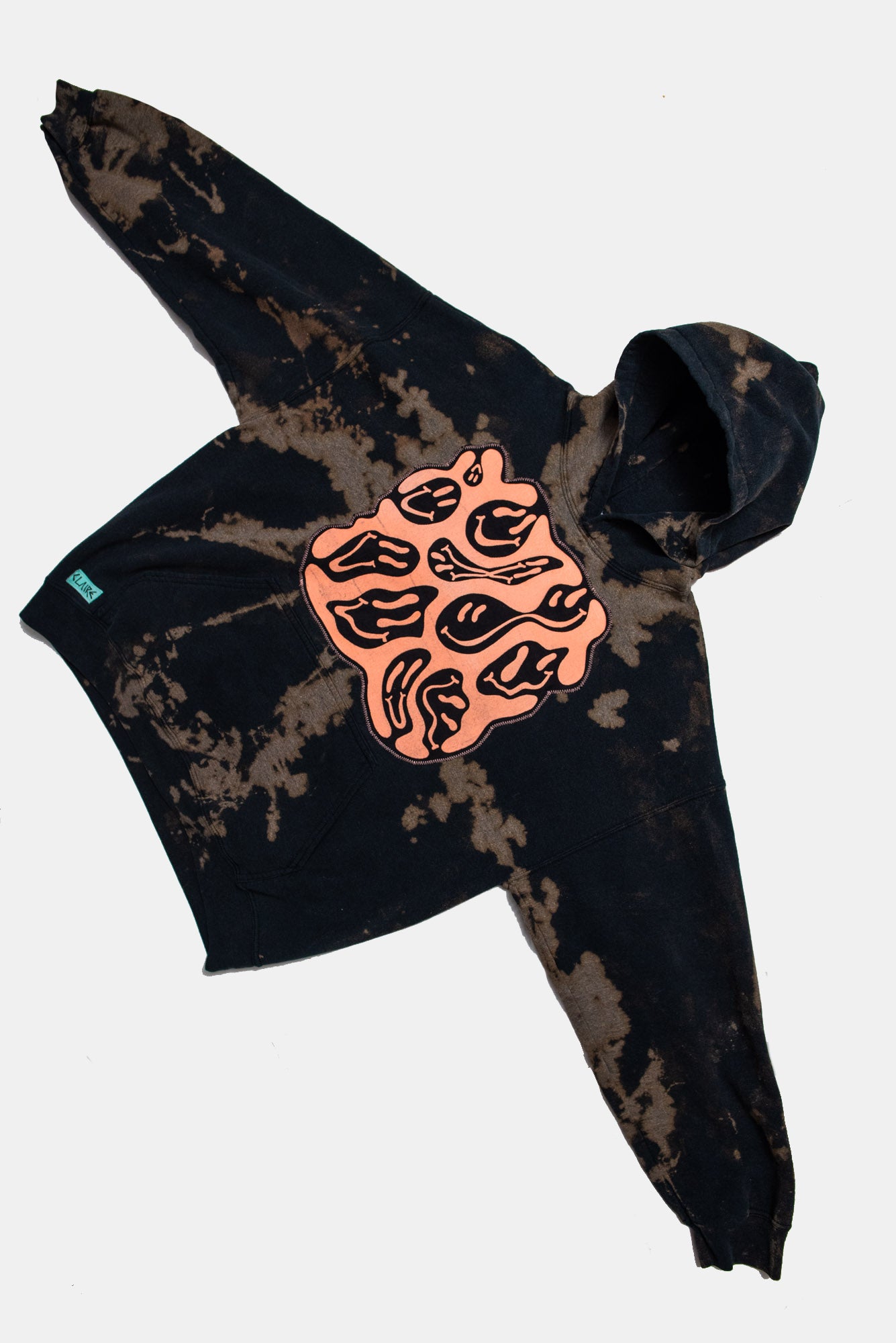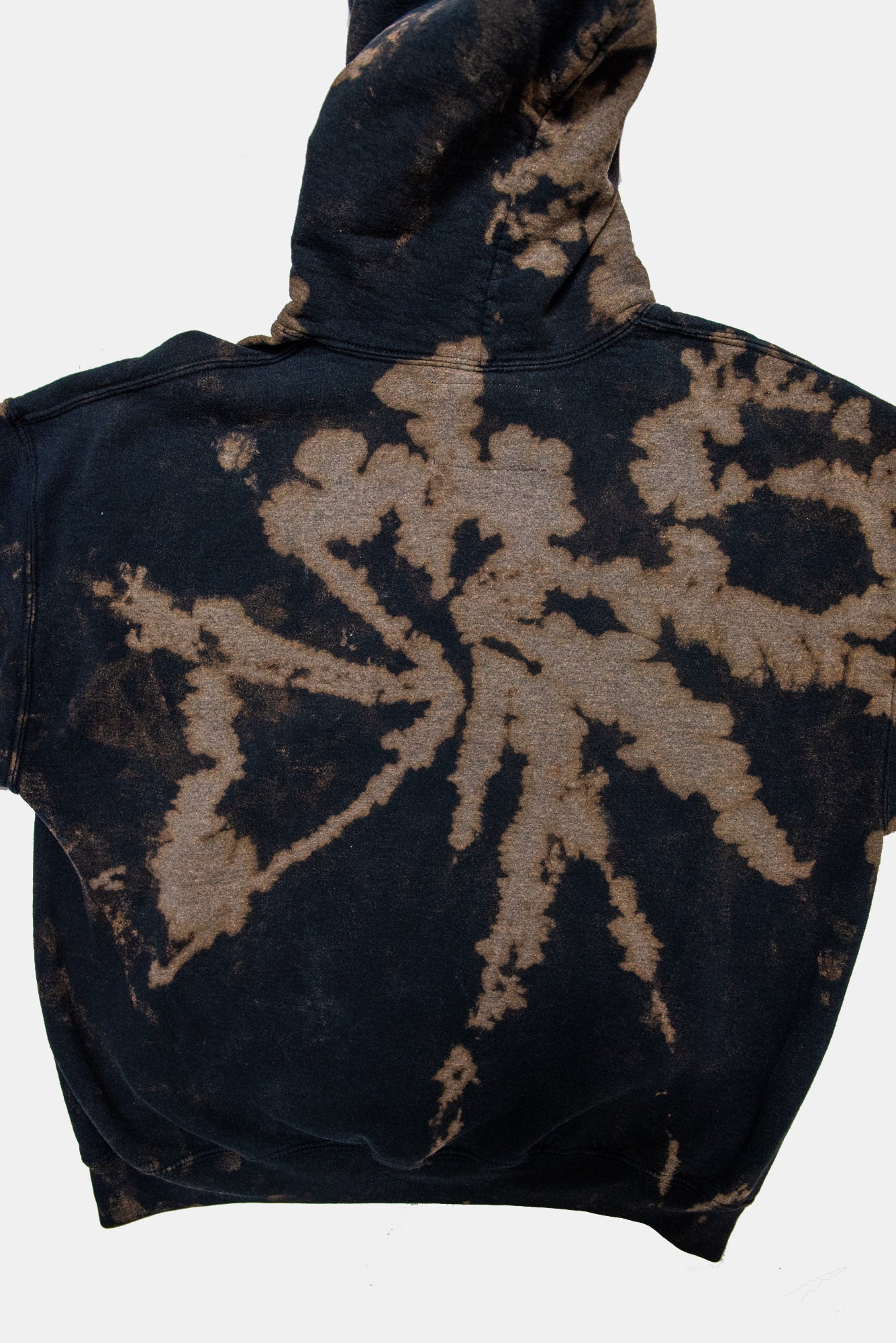- Hand tie-dyed hoodie with black, brown and grey blue tones