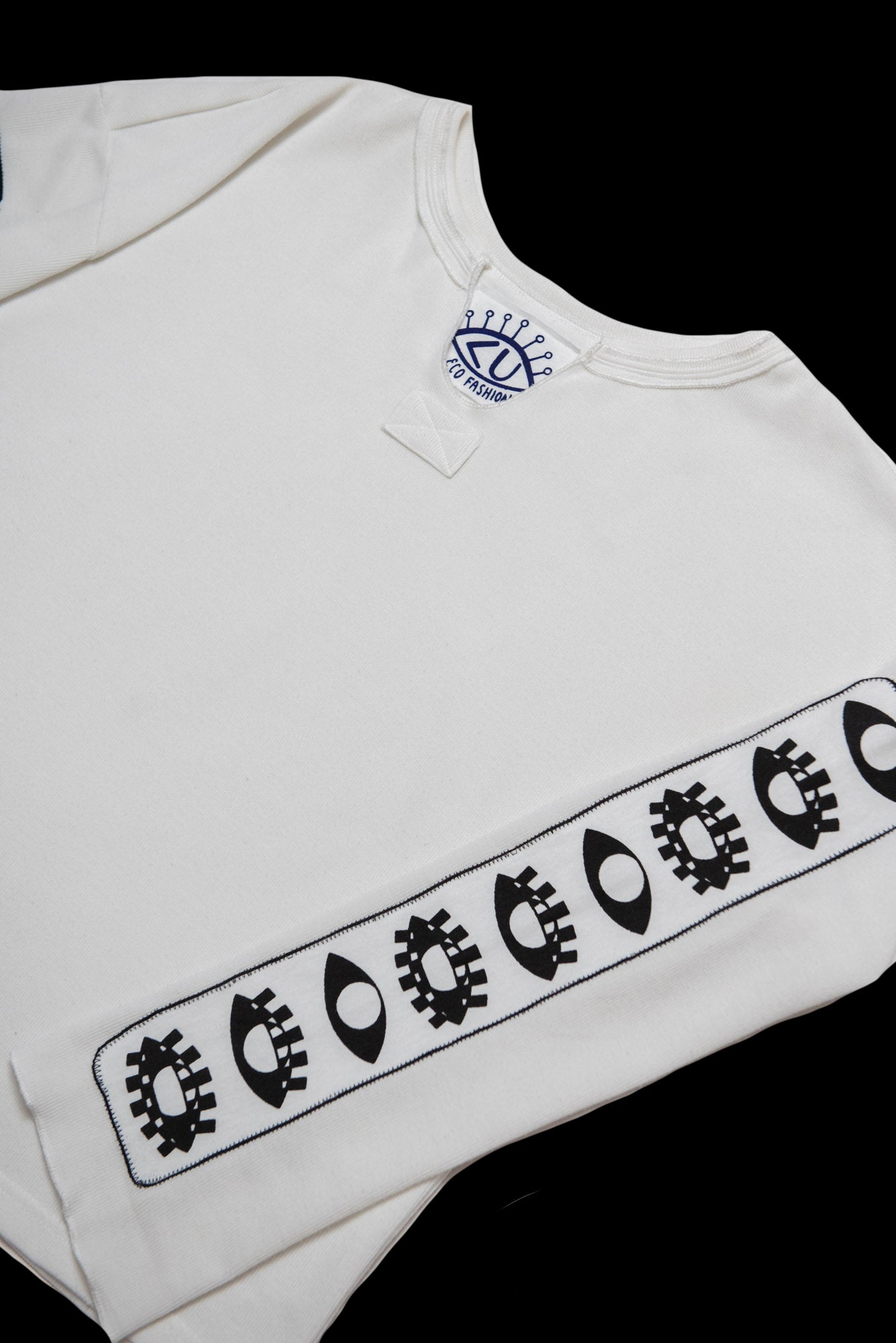 - Design: white fabric with black ink, "VISIONARY CHANNELS" Design