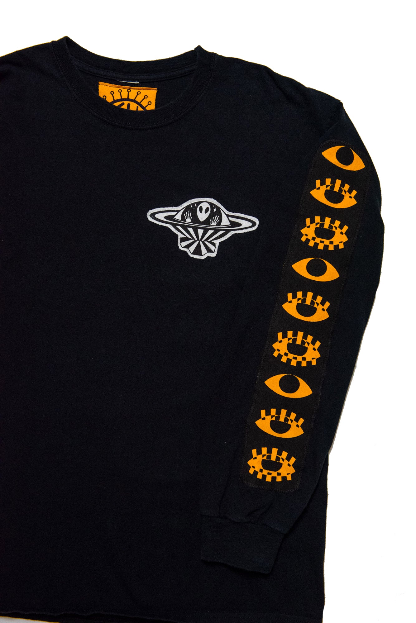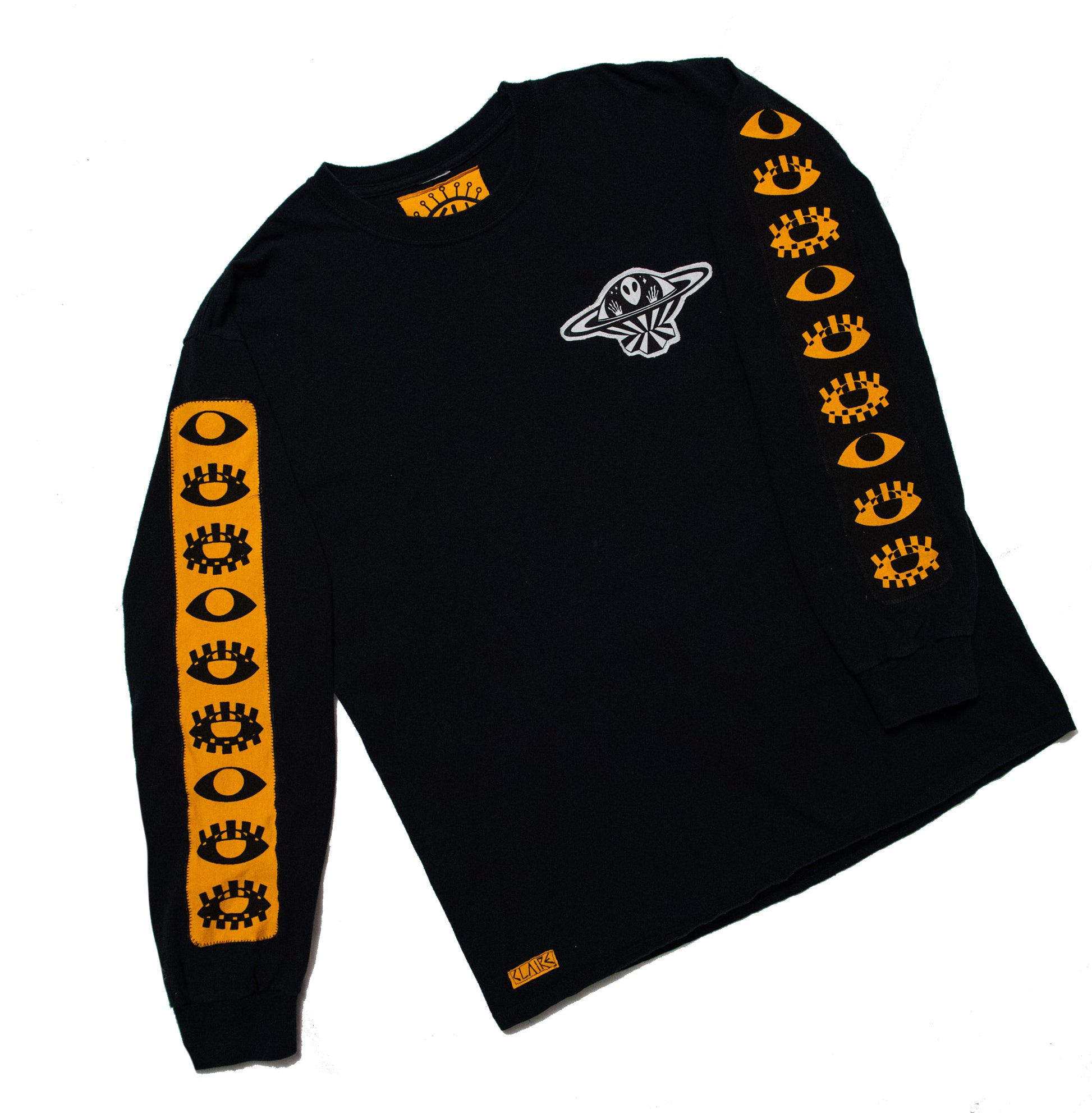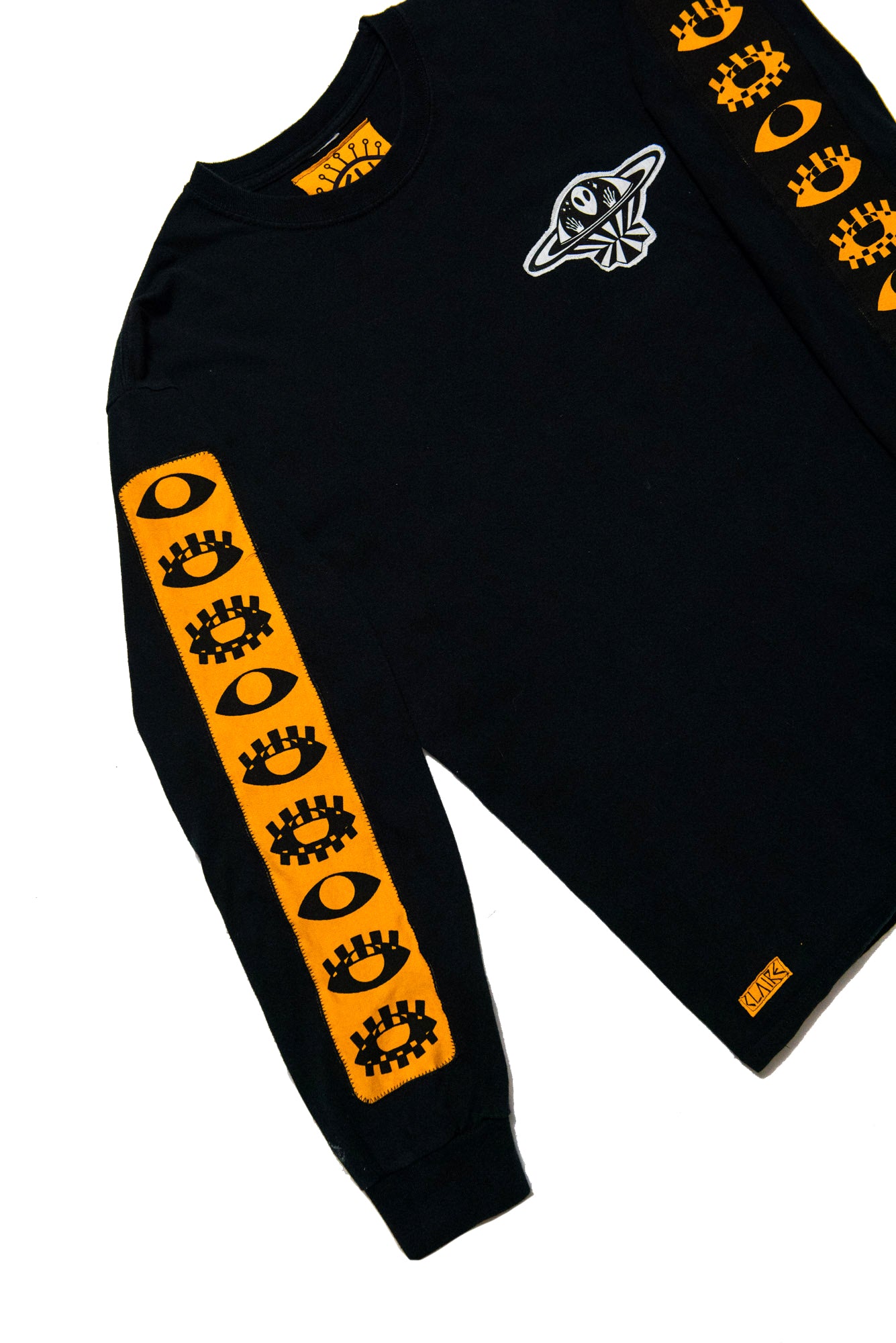 - Design: Mustard yellow fabric with black ink, "VISIONARY CHANNELS" Design