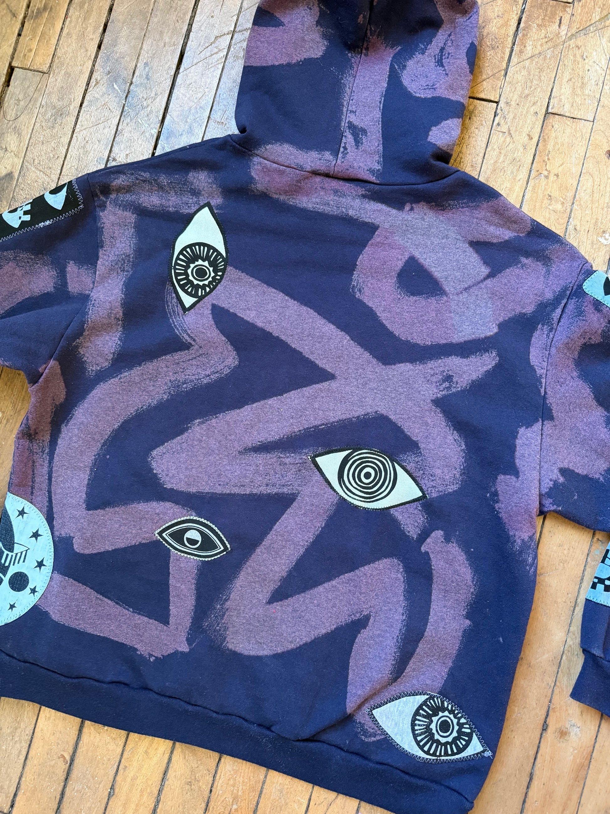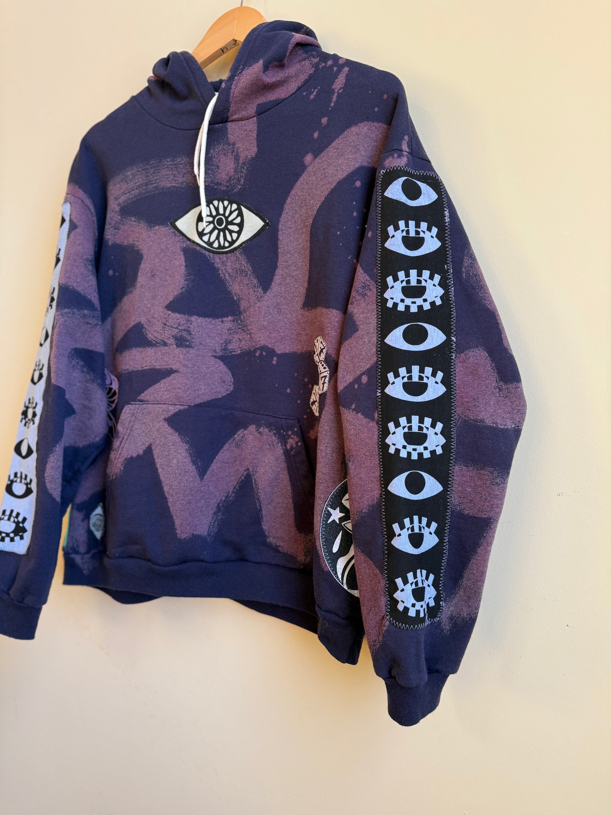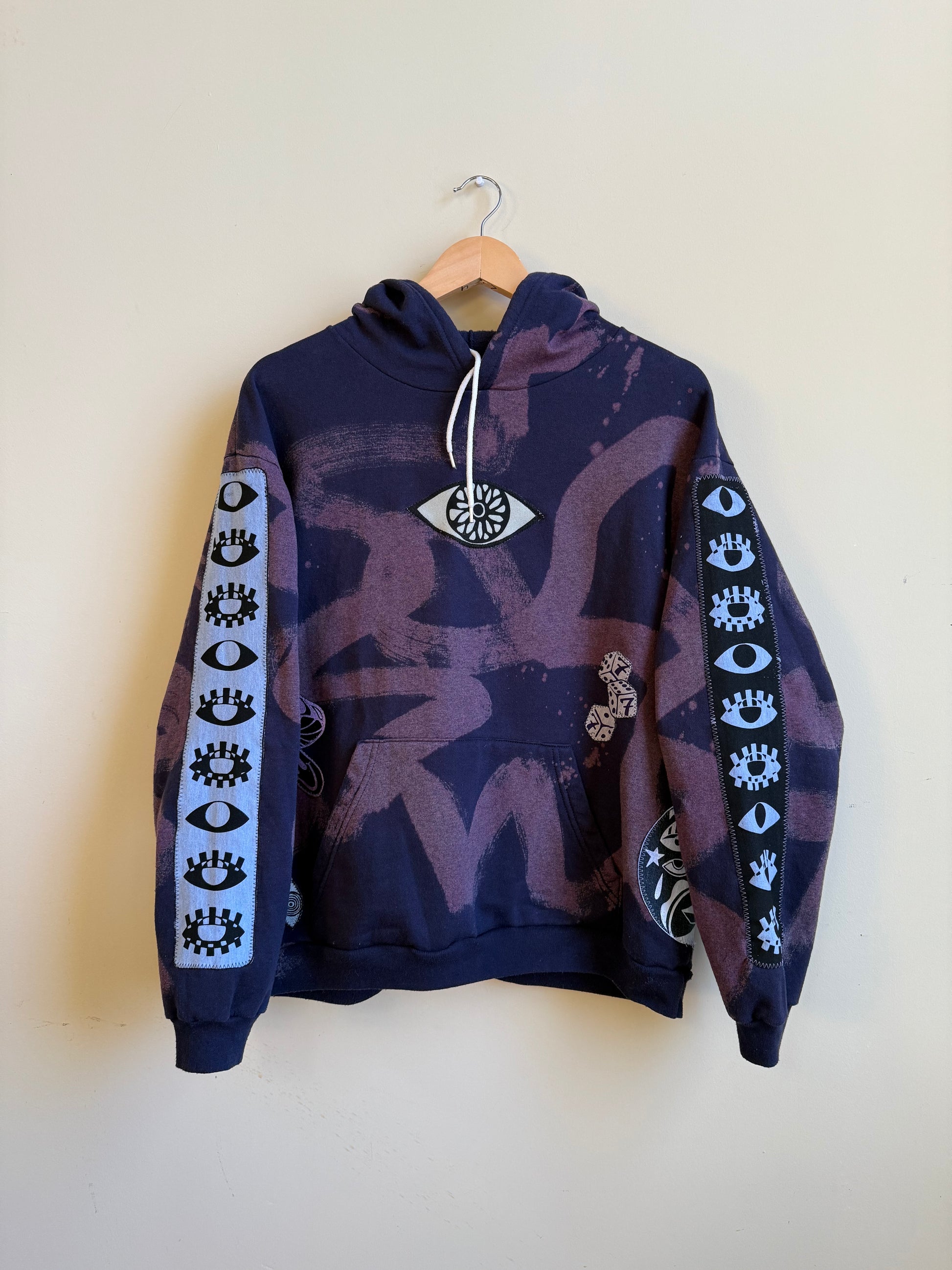 - Navy hoodie with bleach dye transfer