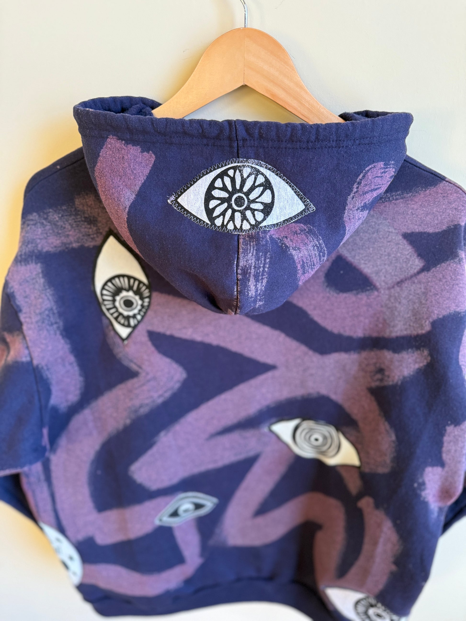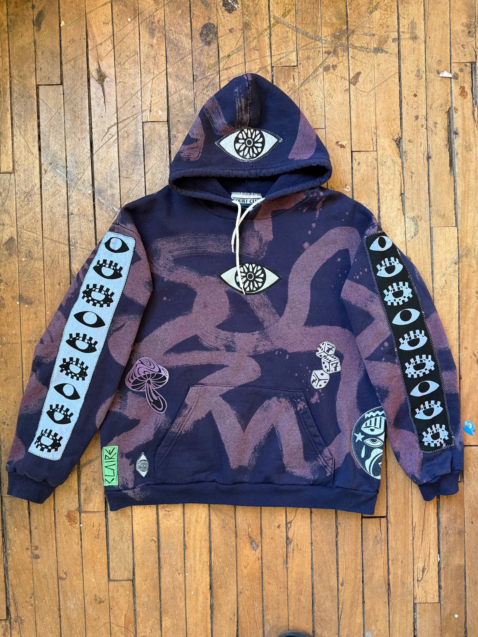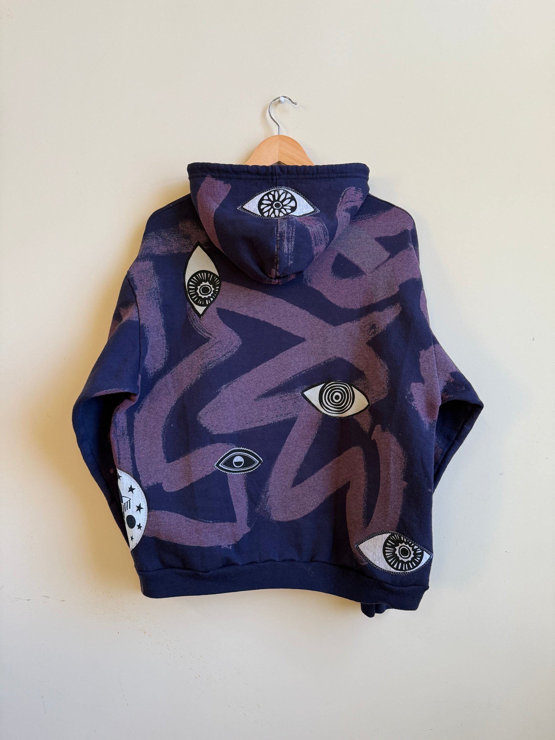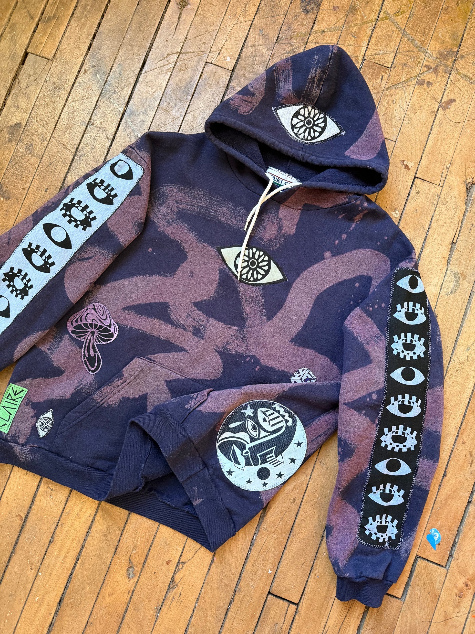- Navy hoodie with bleach dye transfer