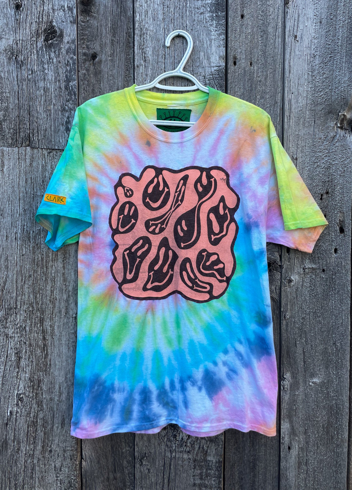 - Design: Dark brown fabric bright Peach Pink ink, SMILEYS design